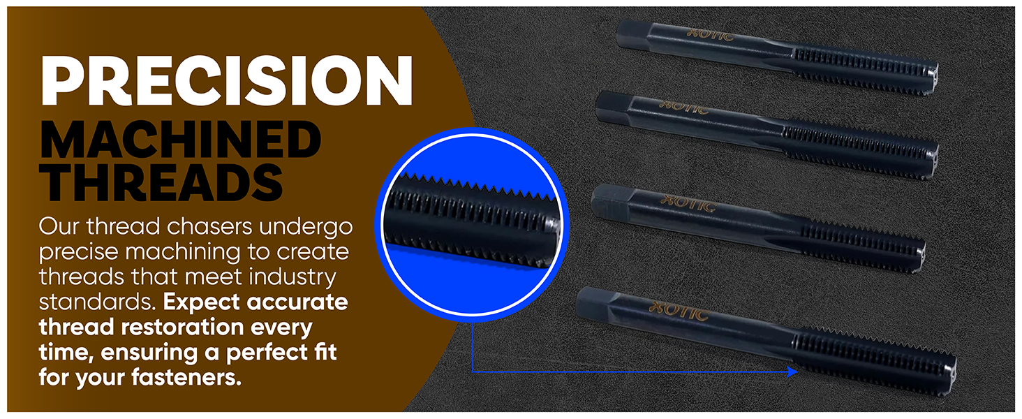 • استعادة الخيوط العالمية: تم تصميمها لتعدد الاستخدامات، ويمكن استخدام مطاردات الخيوط لدينا على مجموعة واسعة من أدوات التثبيت الملولبة، مما يجعلها خيارًا مثاليًا للسيارات والآلات والمشروعات التي تصنعها بنفسك.
