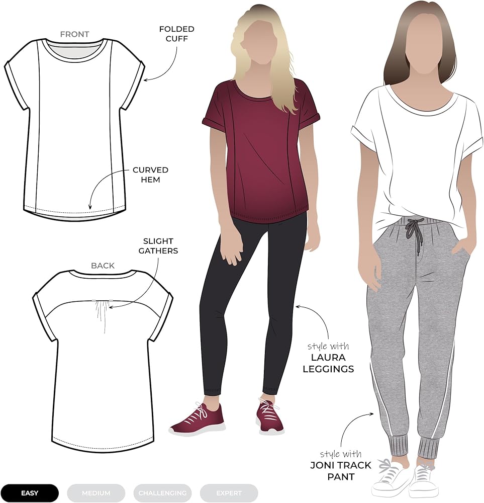 This is a Style Arc women's short-sleeve top sewing pattern. Along with the sleeve cuff, the design lines give this top an on-trend point of difference. The back yoke creates a flattering silhouette that is easy to wear. Combine woven with knit or two different textures or colours to suit your own individual style.