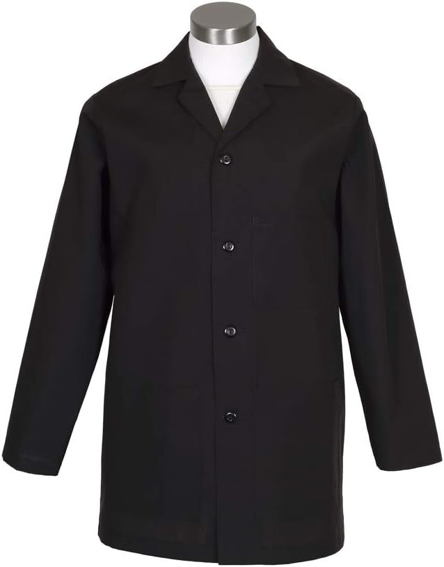 This men's counter coat is a durable smock that is perfect for teachers, supermarket employees, pharmacists, and more. This is a smock that comes clean easily and won't look like a collage of last month's stains, thanks to the Dura Stain finish. This smock holds its shape all day and maintains its color after many washings because it's made of durable 65/35 poly/cotton poplin. Featuring full-length sleeves and four color-matched buttons to protect your clothes. There are two lower patch pockets and a left chest pocket to hold all of your tools.