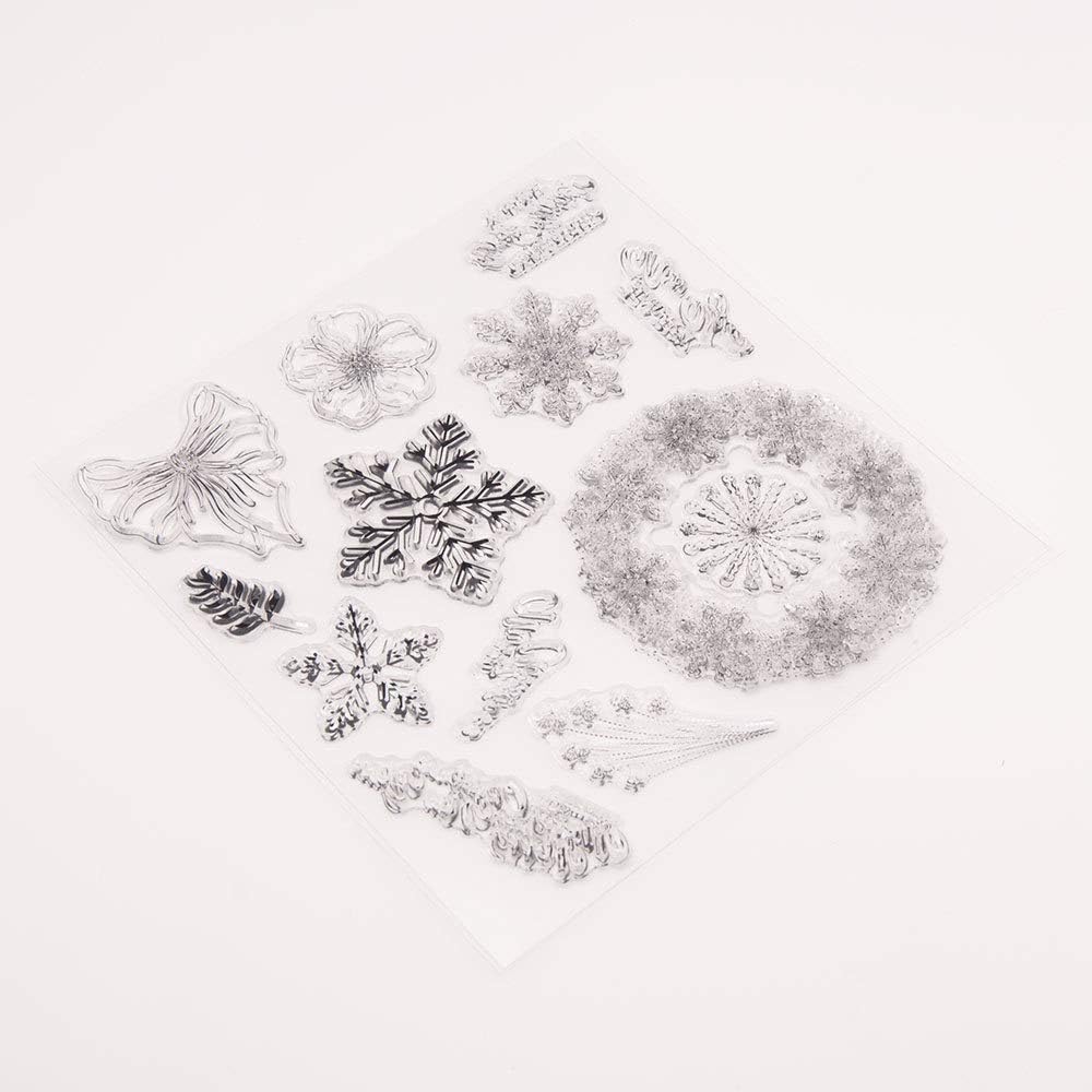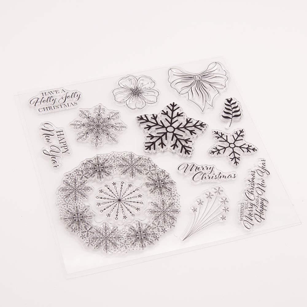 LZBRDY 6.1 بوصة رقاقات الثلج زهرة أوراق القوس طوابع مطاطية شفافة لصنع البطاقات وسكرابوكينغ طوابع عيد الميلاد الحرفية