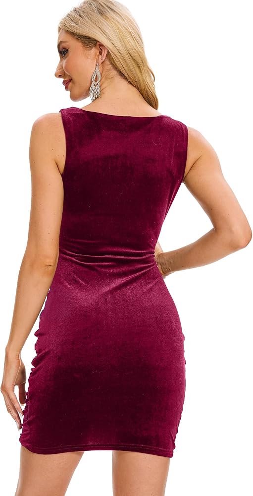 فستان نسائي رسمي من Moss Rose للسهرات المسائية وحفلات الكوكتيل، فساتين رسمية متوسطة الطول بدون أكمام من المخمل