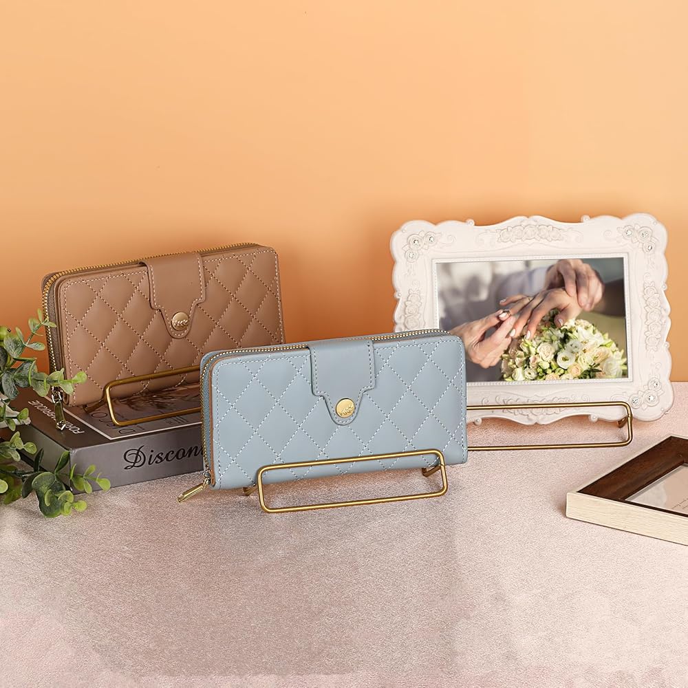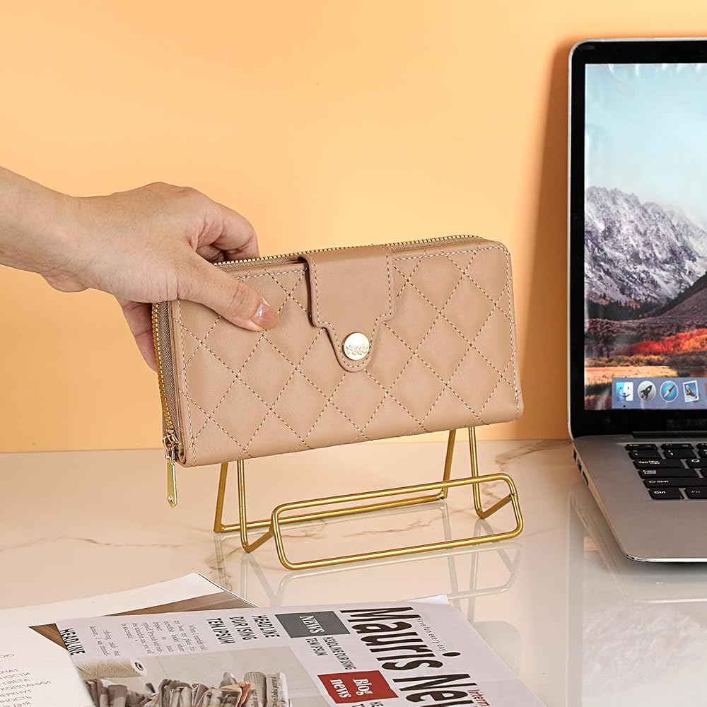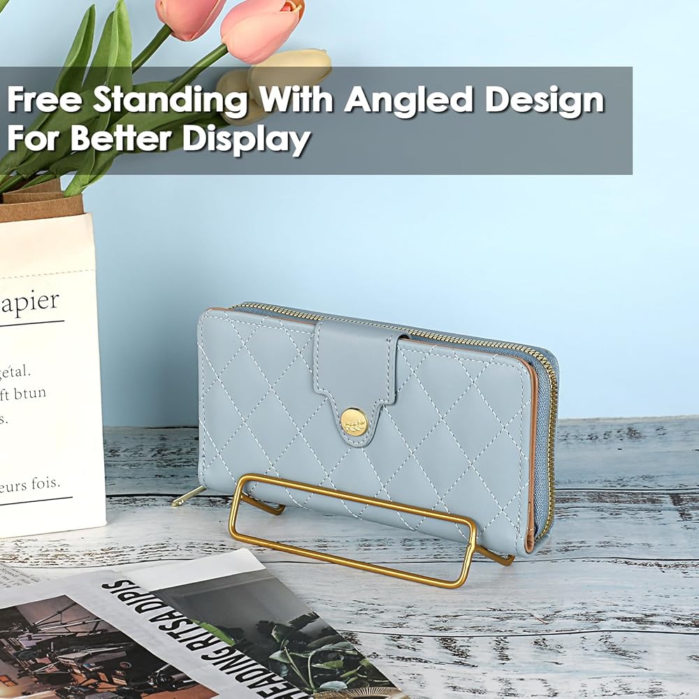 حامل عرض المحفظة مصنوع من المعدن بلمسة نهائية ذهبية، ويبدو أكثر روعة ومتانة وأمانًا وسهل التنظيف