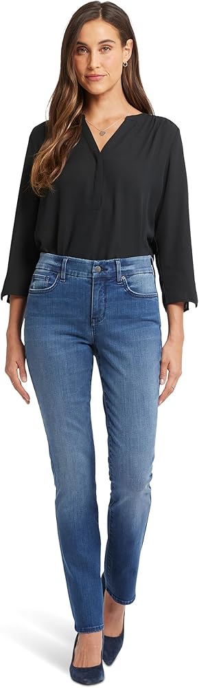 تم تصميم بنطال الجينز النحيف NYDJ Weight-Match Sheri Slim ليناسب احتياجاتك، ويتميز بأسلوب سحري. يتميز هذا الجينز الشاهق بقصة ضيقة أنيقة وساق ضيقة، ويعيد تعريف الإغراء بفضل تقنية Lift Tuck، المصممة لرفع جسمك وتنحيفه وثنيه. ال