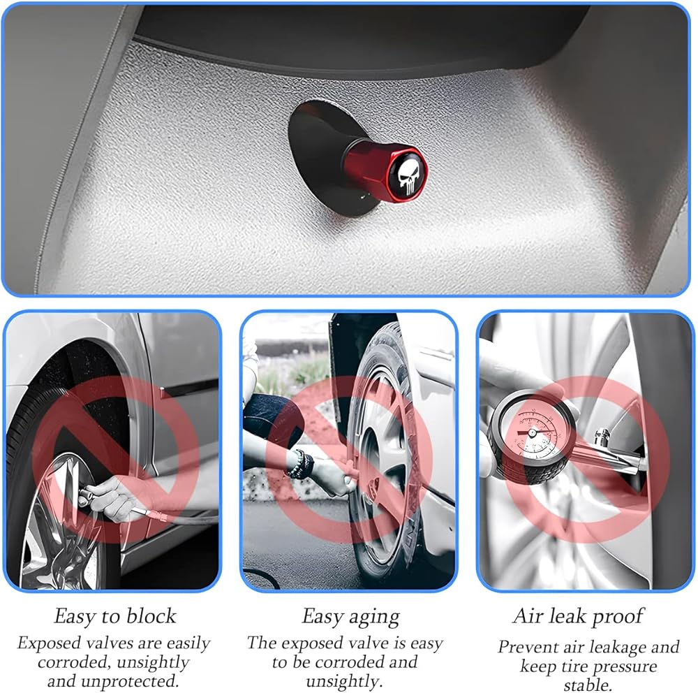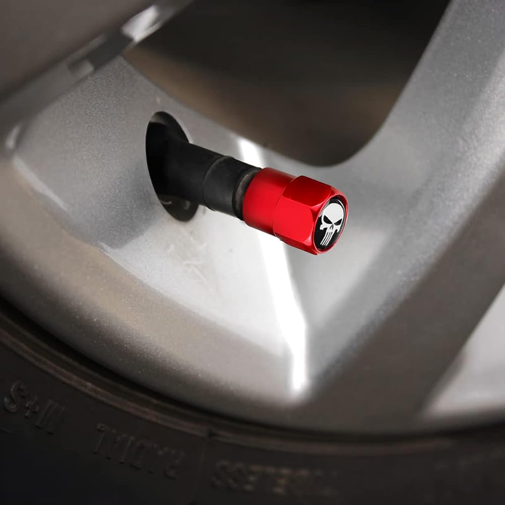• 【Aluminum Alloy】: The skull tire valve stem cap is made of sturdy aluminum material, which replaces your original plastic valve stem cap and effectively prevents air leaks, dust, dirt or water from entering the tire. The surface uses a professional-grade plating process so that it always looks very smooth and will not fade easily no matter how long you use it.