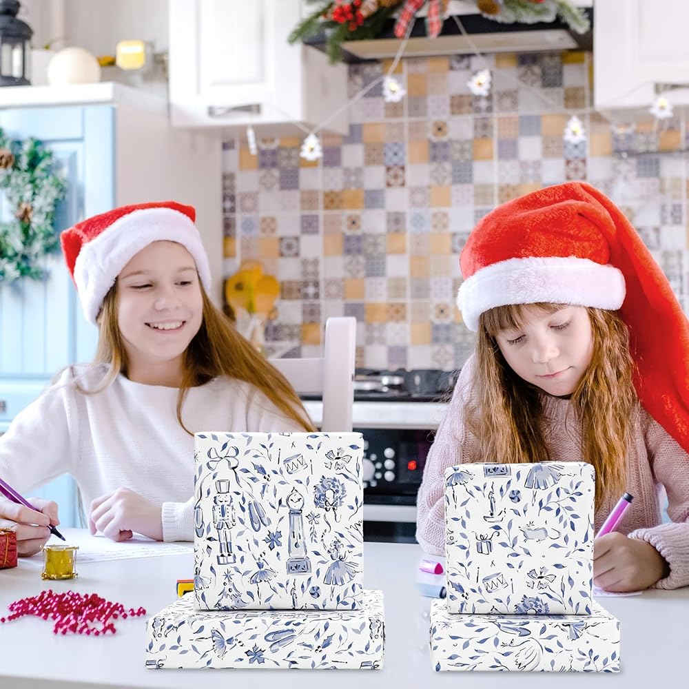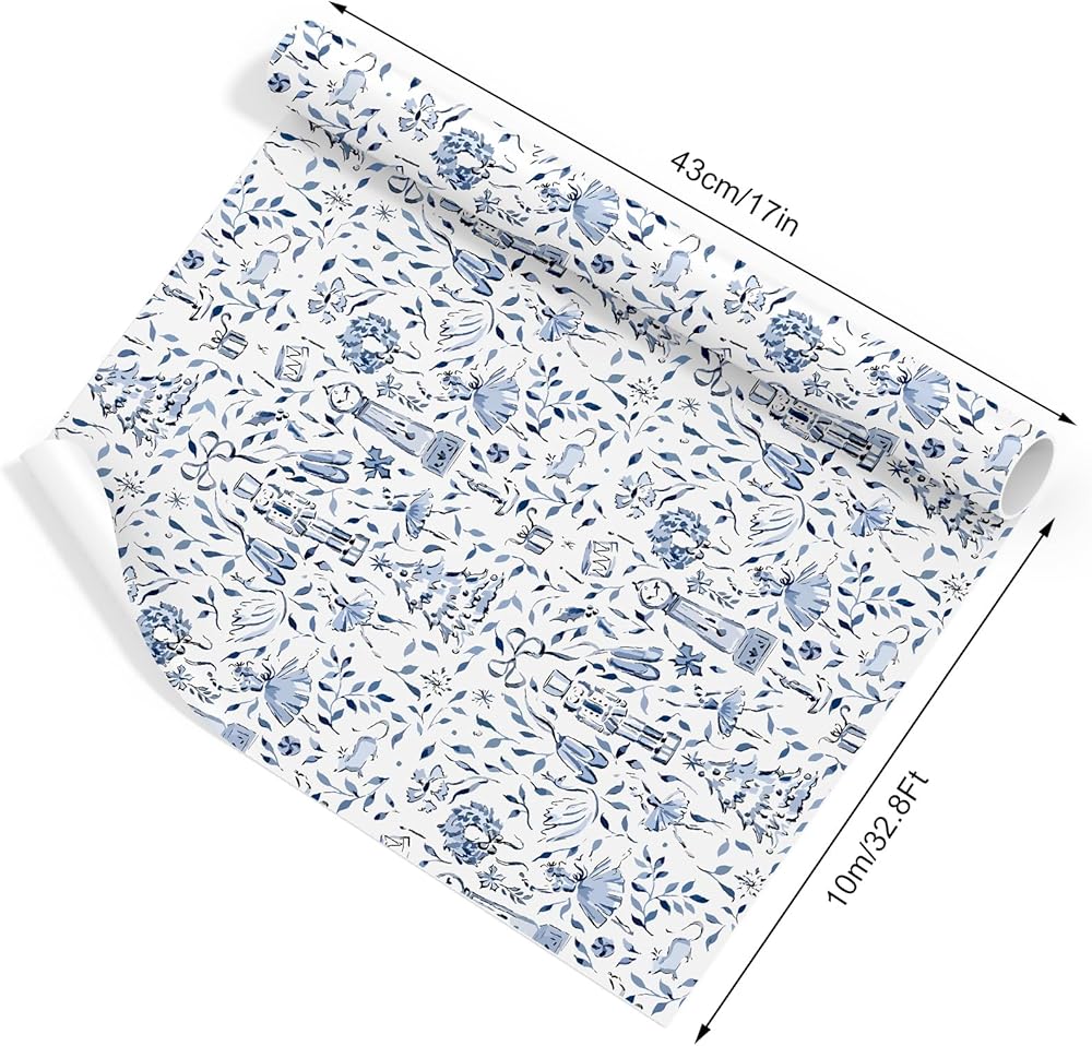 ورق تغليف عيد الميلاد من JarThenaAMCS - لفة صغيرة - 17 بوصة × 32.8 قدم أزرق شجرة عيد الميلاد كسارة البندق هدية ورق تغليف ورق فني مزخرف لمستلزمات الحرف اليدوية