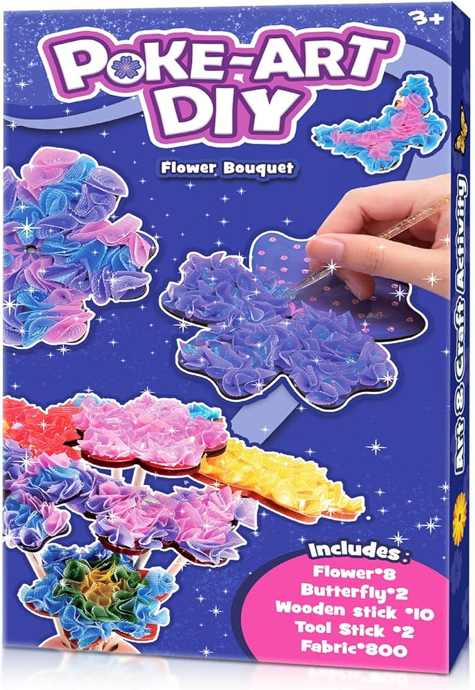 【فن النخزة الذي تصنعه بنفسك】تأتي ألعاب الفتيات هذه مع 800 مربع قماشي، و8 زهور، وفراشتين، و10 سيقان خشبية، و2 عصا كزة، ودليل تعليمات. دع الأطفال يصنعون باقة فريدة خاصة بهم!