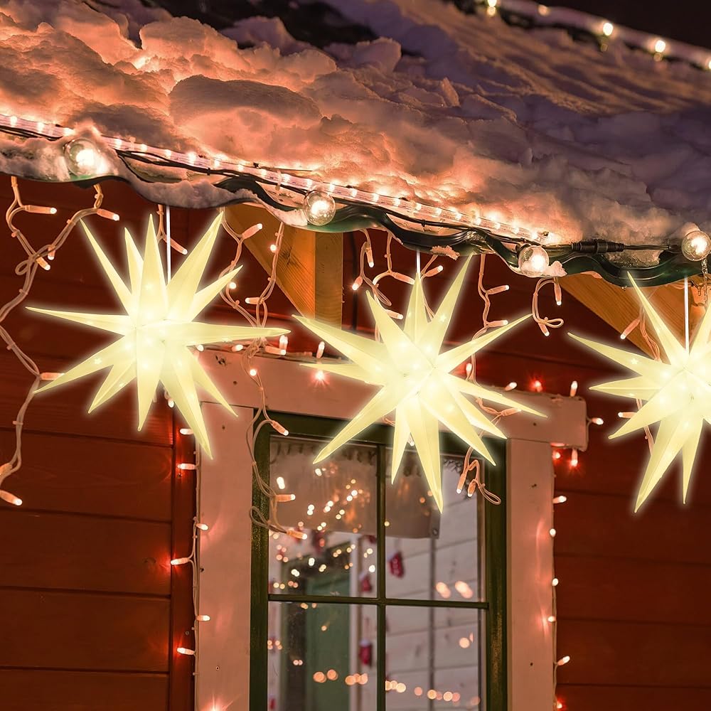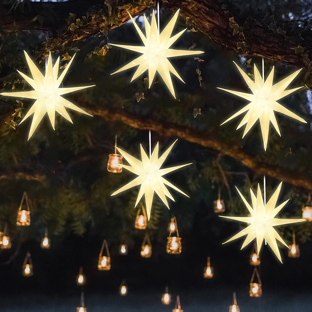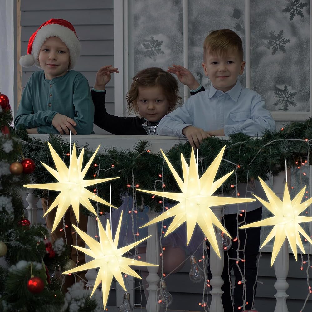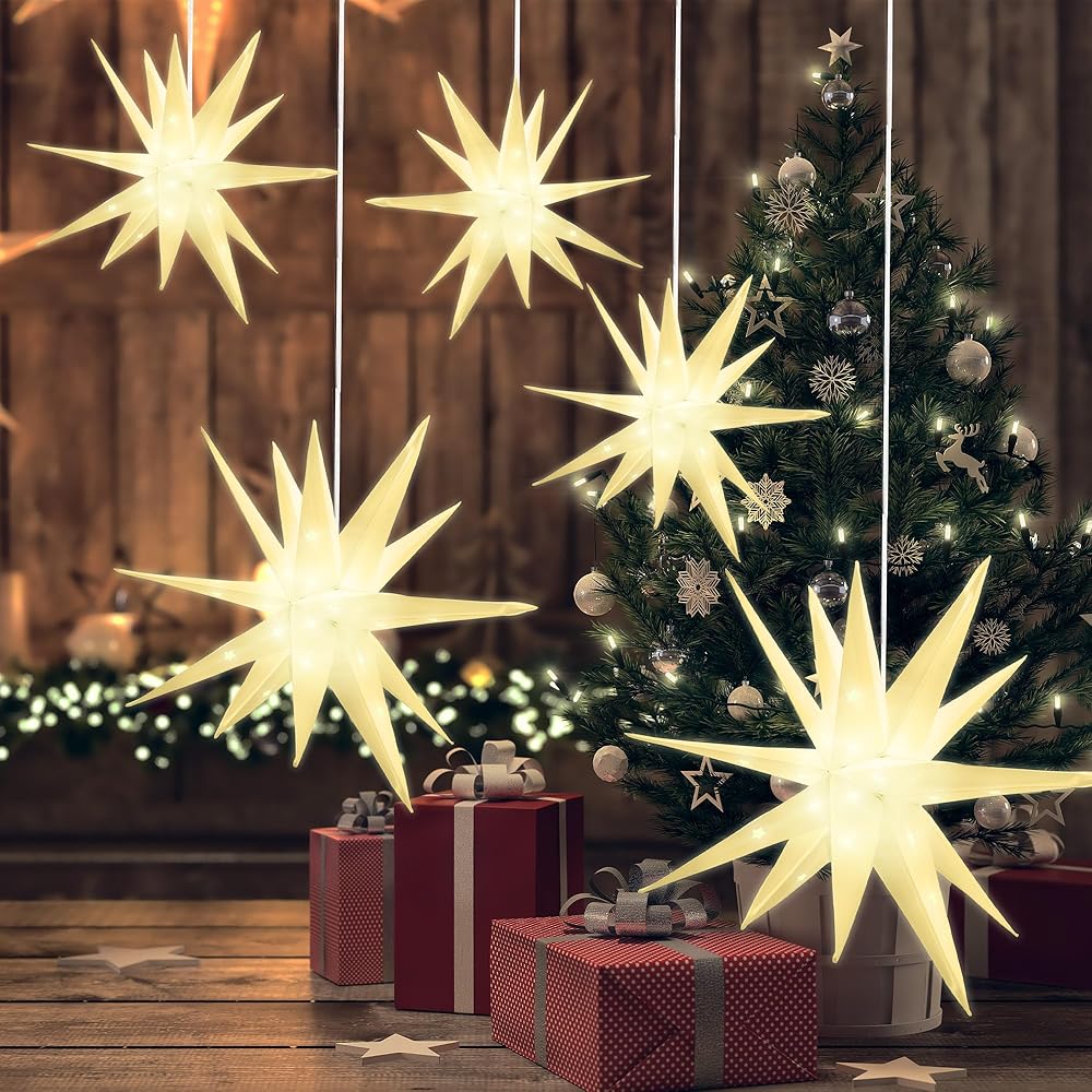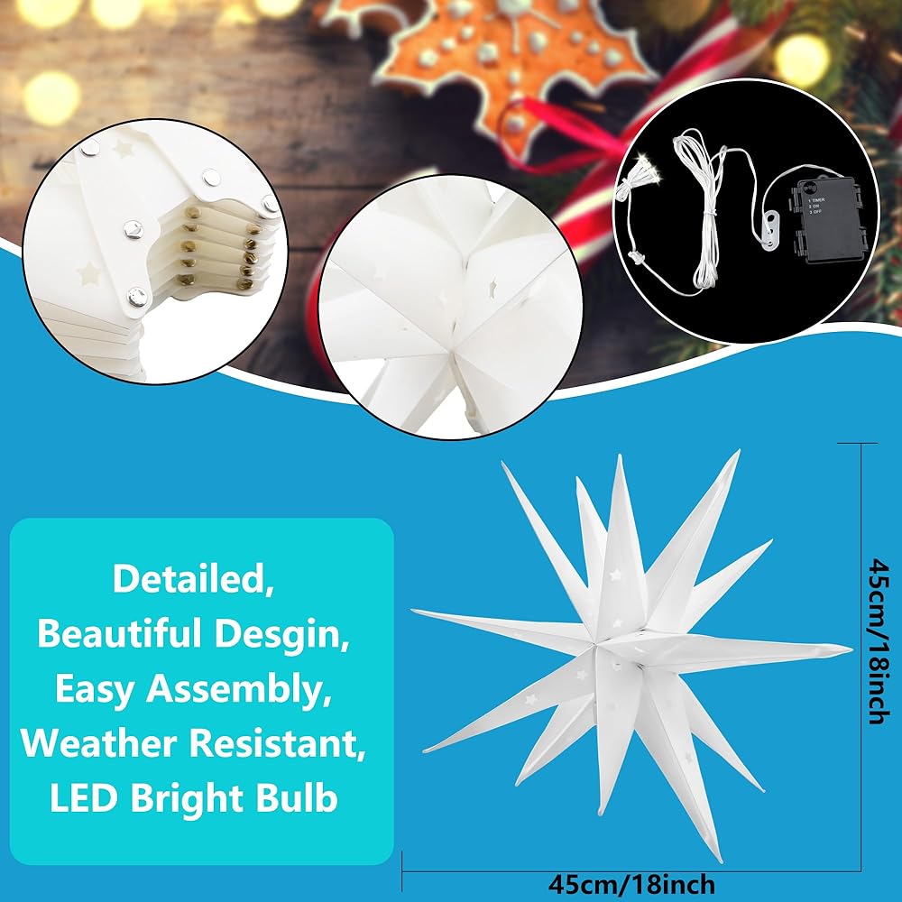2 Pack 18" Christmas Star Lanterns Light Up Star Hanging PVC Star Ornament with Led Battery Box for Christmas New Year Birthday Wedding Party Decorations