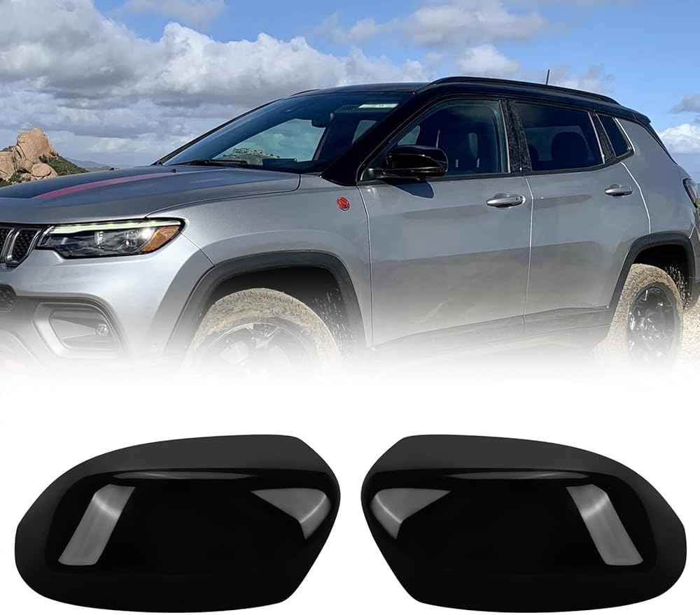 غطاء مرآة بديل مباشر أسود لامع لسيارة جيب شيروكي 2014-2024 وجيب كومباس 2017-2024، OEM #: 68228908AA، نمط بديل مباشر، وليس نمط الملصق