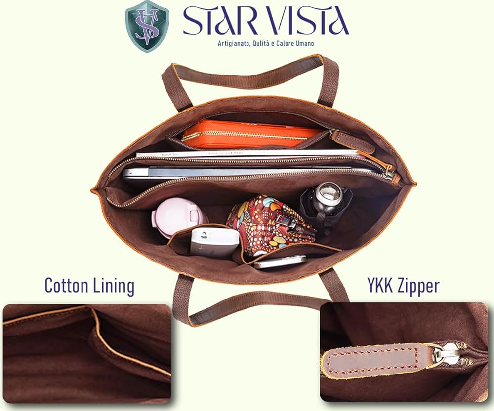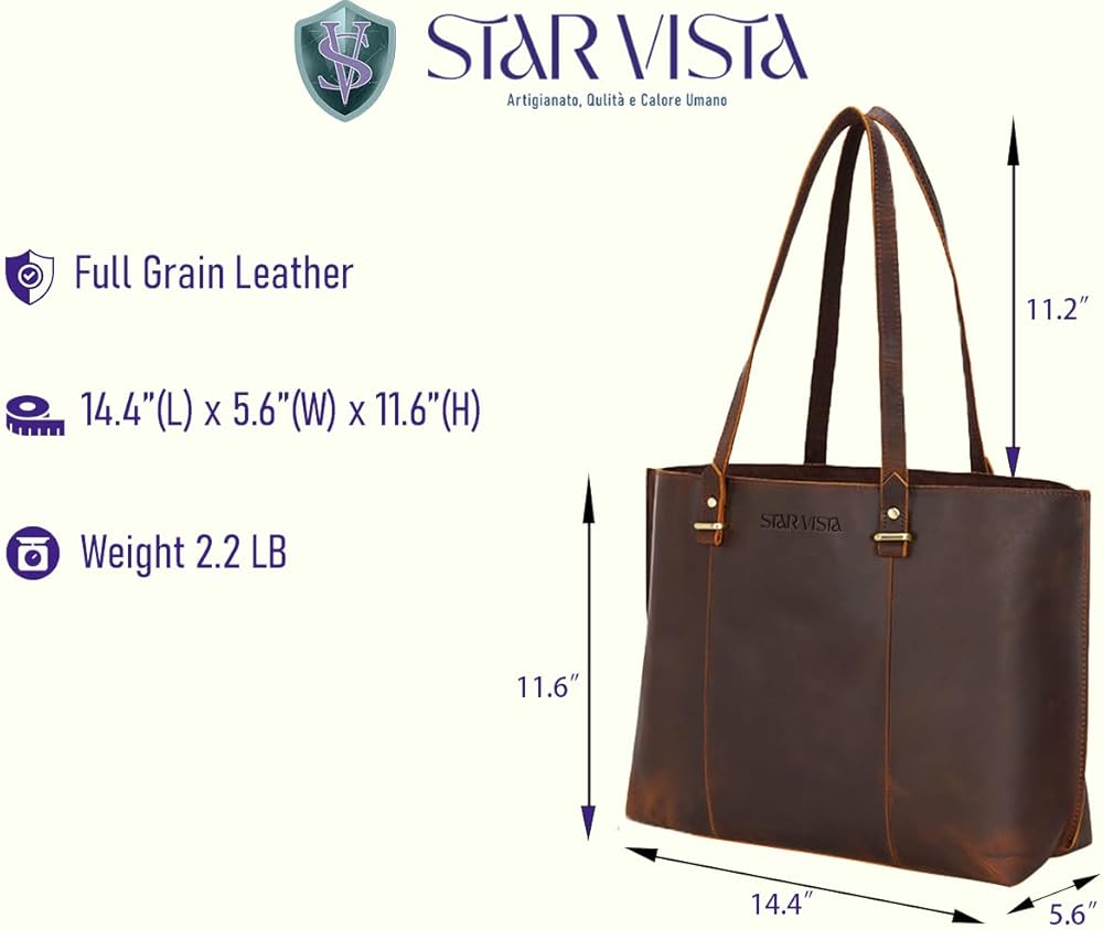 【الجودة من المصدر】مصنوعة من جلد البقر المحبب بالكامل من المراعي الفاخرة، ومدبوغة بمستخلصات نباتية طبيعية، تم تصميم حقيبة اليد ستار فيستا هذه لتدوم بمظهر عتيق أنيق وملمس مناسب لأي مناسبة سواء للعمل أو الإعدادات غير الرسمية. هدية مثالية للنساء.