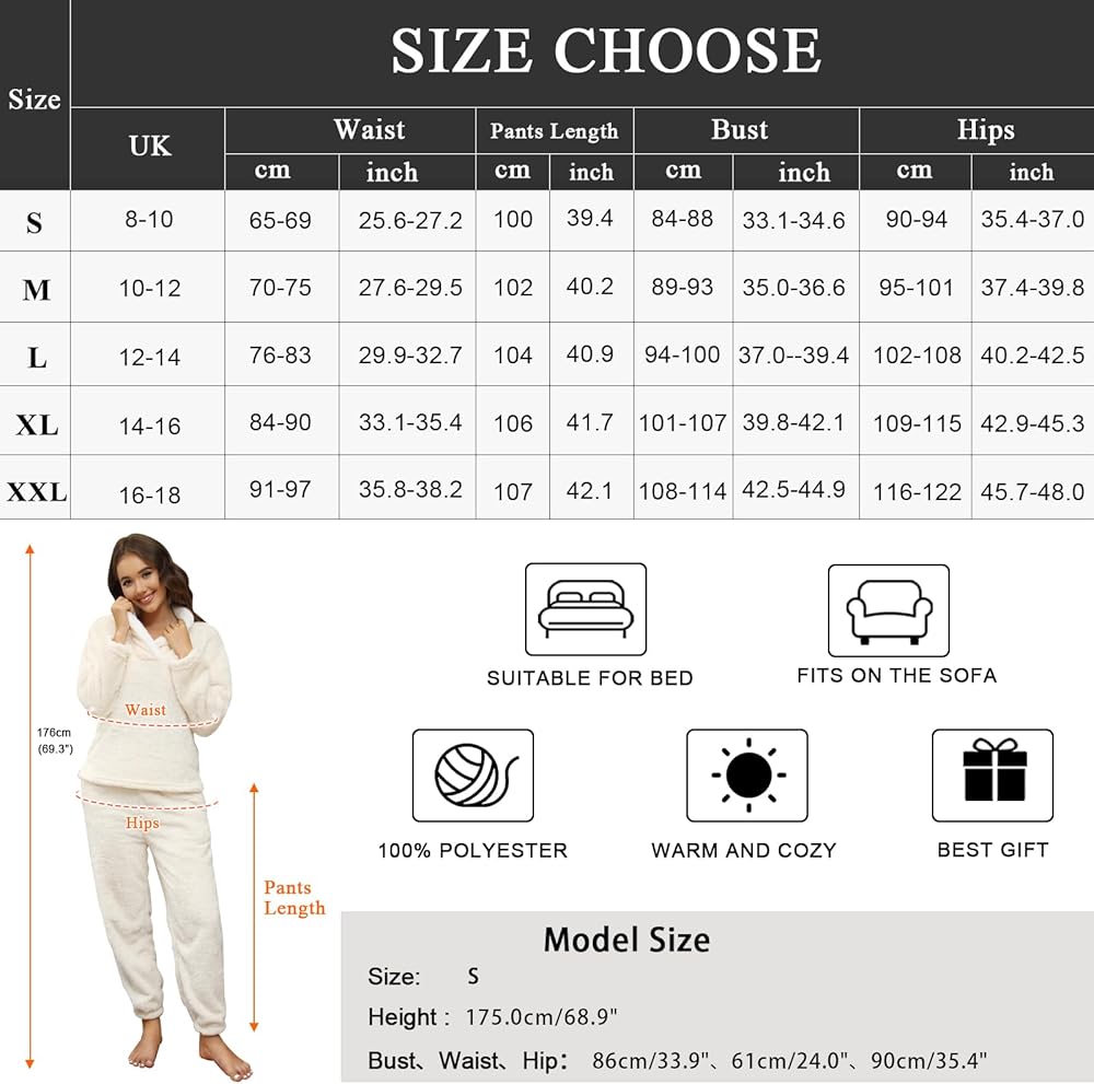 【طقم بيجامة للنساء قطعتين】: مجموعة ملابس الاسترخاء النسائية فائقة النعومة هذه مقسمة إلى بلوفر علوي من الصوف وبنطلون طويل منفوش، ويمكنك أيضًا ارتداء البنطلون والجزء العلوي بشكل منفصل، مع ملابس أخرى بحرية. سواء كانت هدية عيد الميلاد، أو عيد الأم، أو أعياد الميلاد، أو رأس السنة الجديدة أو الذكرى السنوية، فإن البيجامات الشتوية للنساء هي الخيار المثالي كهدية لعائلتك وأصدقائك.