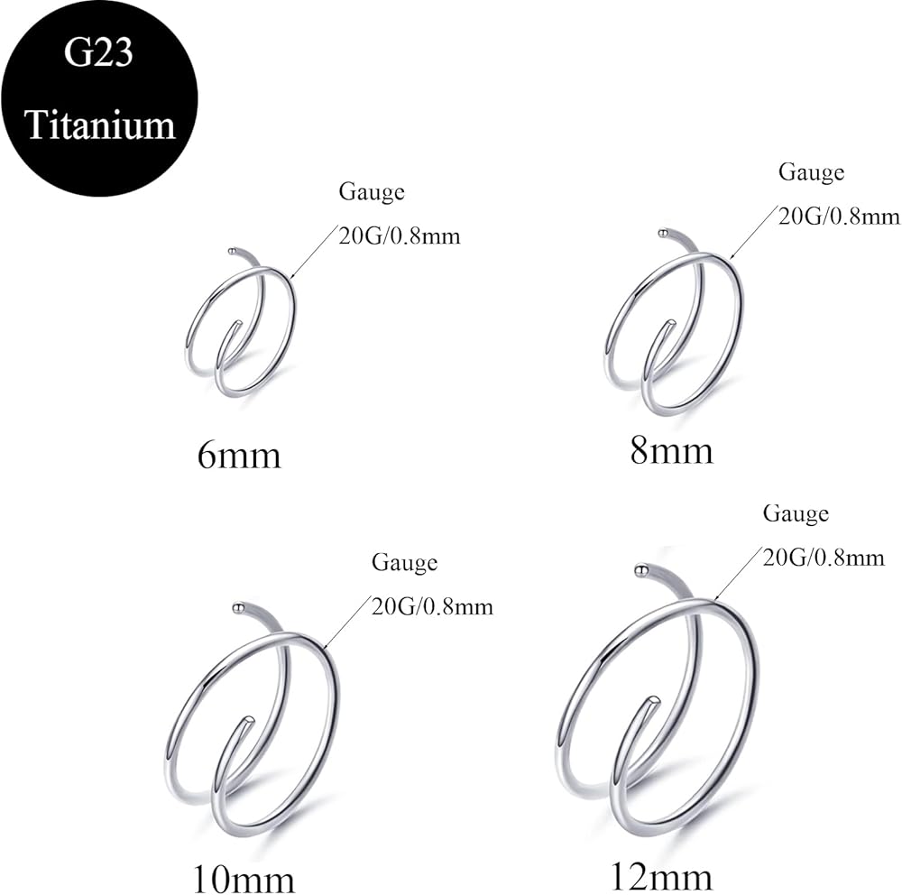 4 قطع/8 قطع G23 تيتانيوم 20 جرام طوق مزدوج 6 مم 8 مم 10 مم 12 مم حلقة الأنف الملتوية لثقب واحد حلزوني حلقات الأنف للنساء ثقب الأنف