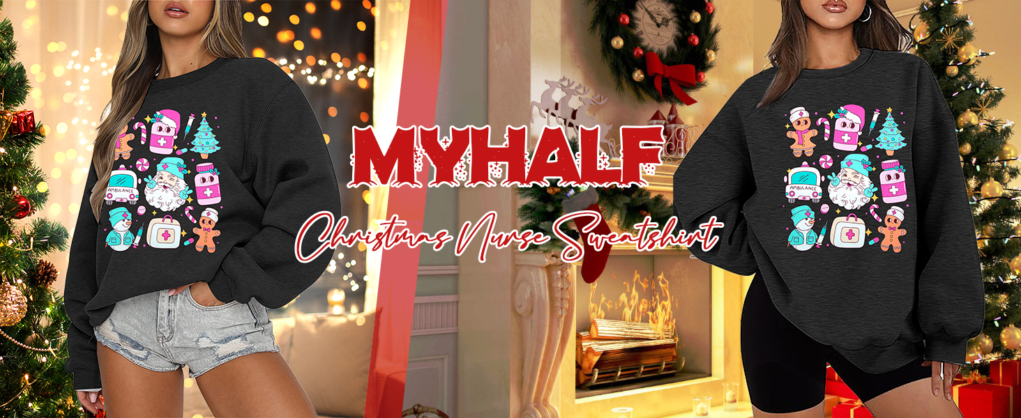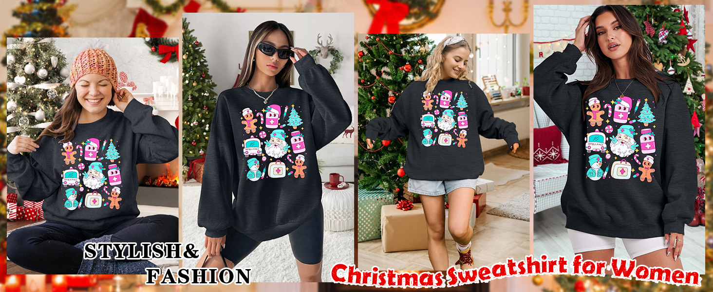 المواد: سويت شيرت ممرضة عيد الميلاد مصنوع من مزيج القطن الناعم والمريح. يُقترح غسله يدويًا/في الغسالة بالماء البارد، ولا تستخدم التنظيف الجاف، ولا تستخدم المبيضات.