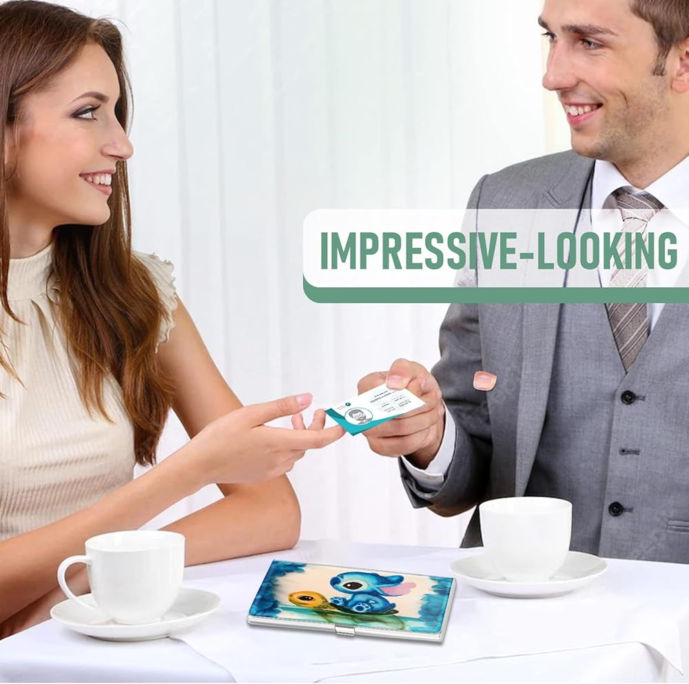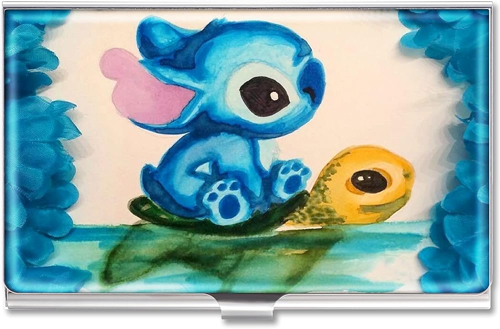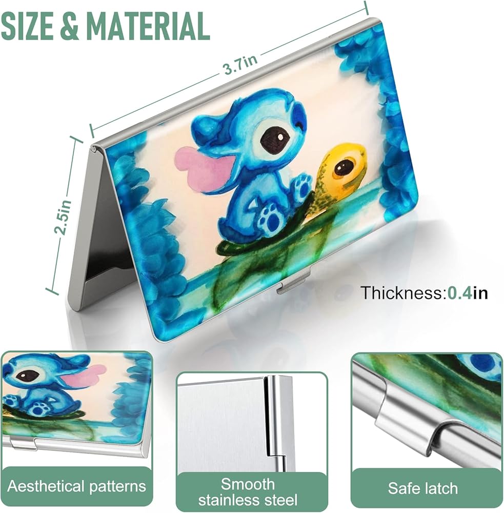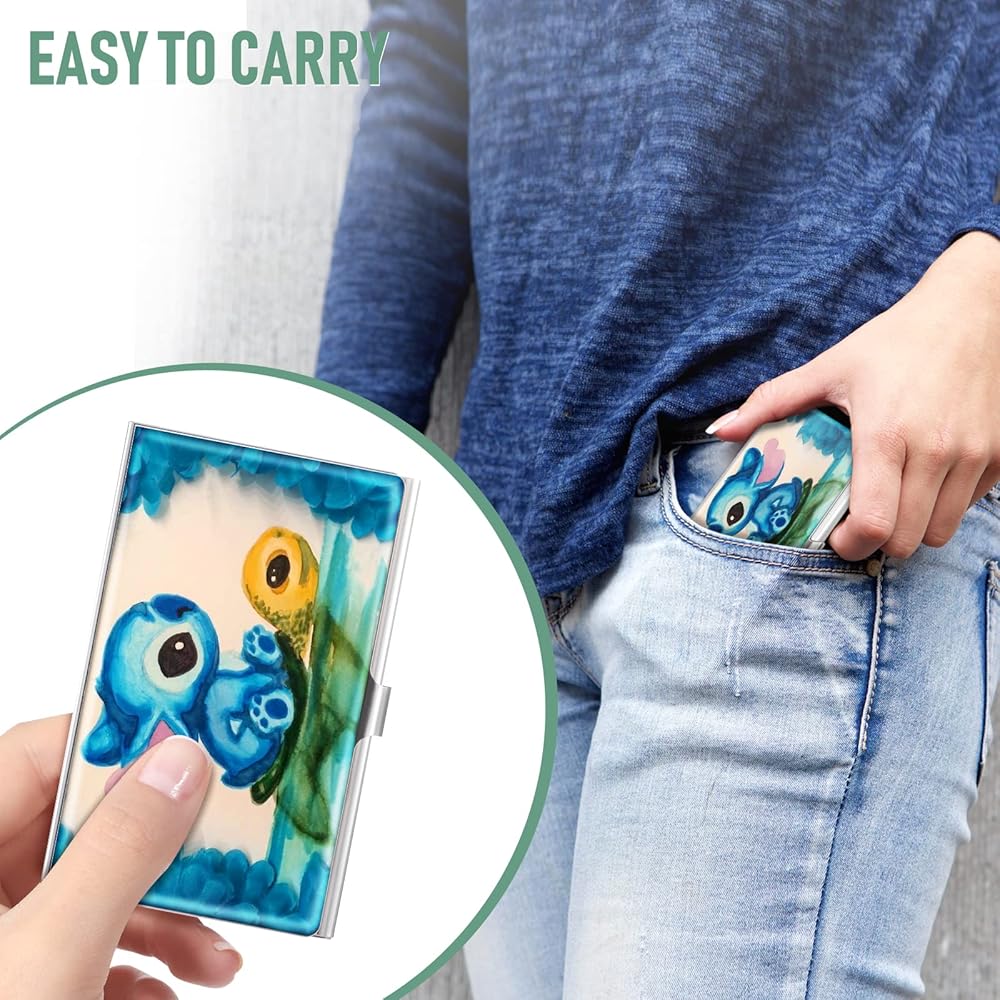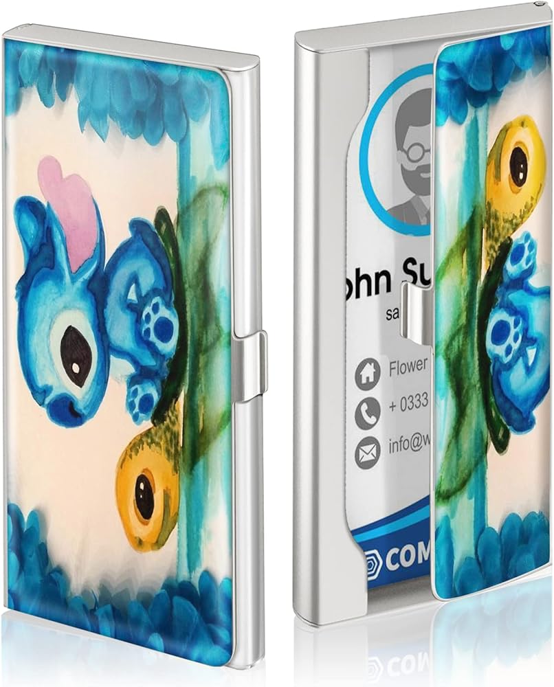 Akkya Business Card Holder Case for Women Men Metal Cartoon Cute Blue Slim Pocket Business Card Purse Cute Presents for Realtors Real Estate Agents