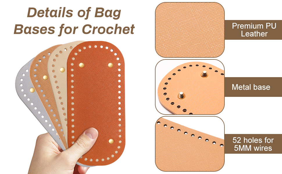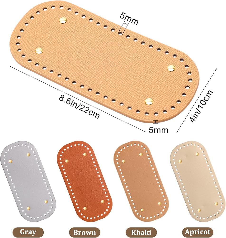 【تفاصيل المنتج】تأتي الأجزاء السفلية لحقيبة الكروشيه الخاصة بنا بأربعة ألوان كلاسيكية: الرمادي والبني والكاكي والمشمش، مما يلبي التفضيلات الفردية ويوفر خيارات متنوعة للأعمال اليدوية الخاصة بك. يبلغ مقاس الجزء السفلي من الحقيبة 8.6 بوصة* 4 بوصة (22 سم * 10) سم) وتتميز بـ 52 فتحة خطية منسوجة، يبلغ حجم كل منها 5 مم تقريبًا، مما يجعلها مناسبة لمعظم أنماط الحقائب.