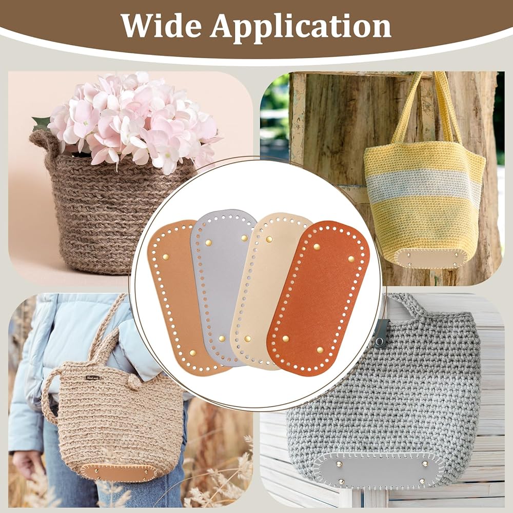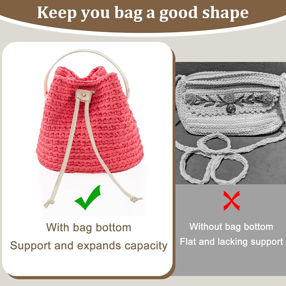 【أسفل حقيبة الكروشيه】 الجزء السفلي من محفظة الكروشيه لدينا سميك وقوي، مما يضمن الحفاظ على شكلها دون تشوه. وضعه في قاعدة حقيبتك المنسوجة يعزز شكل الحقيبة ويزيد من سعتها ويطيل عمر شنطة الكروشيه. بالإضافة إلى ذلك، تضيف براعة الحافة الزيتية الرائعة لمسة أنيقة، مما يزيد من المظهر العام للجزء السفلي من الحقيبة.