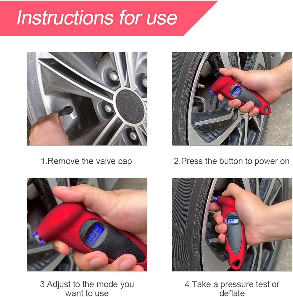 [سريع ودقيق] متوافق مع قراءة ضغط الإطارات وإطلاقه مع معظم أنواع السيارات والشاحنات والدراجات النارية والدراجات الهوائية والمزيد. شاشة عرض LCD بإضاءة خلفية وفوهة مضيئة، تساعدك على التحقق من ضغط الإطارات بوضوح ودقة.