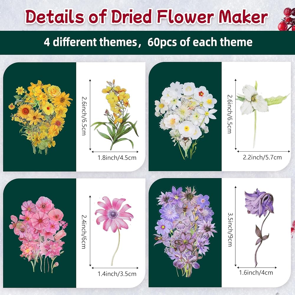 1.The DIY flower bookmark kit is made of durable PET material, which is waterproof and has no odor. It is not easy to break and can be used for a long time. It can also be carried with books, which is convenient.