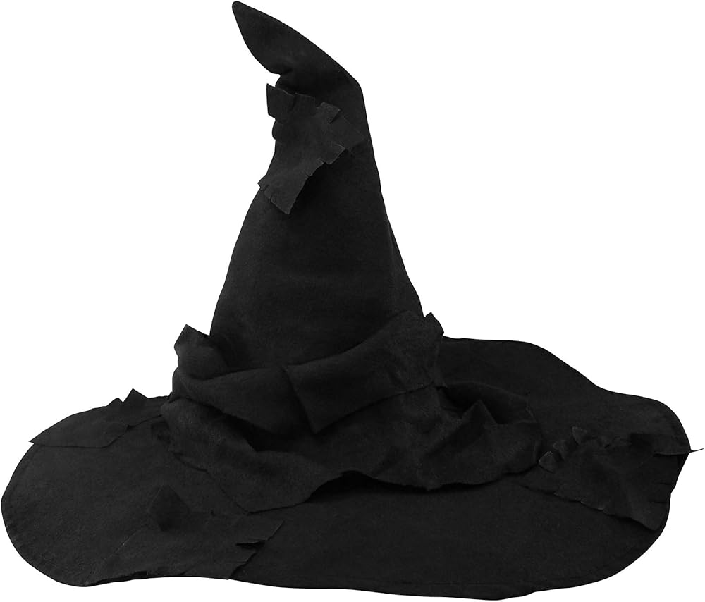 Adult Womens Tattered Witch Hat | Wizard Sorcerer Sorting Cap | Scarecrow Head Accessories | In Black Gray Brown Colors | Halloween Cosplay Party Supplies