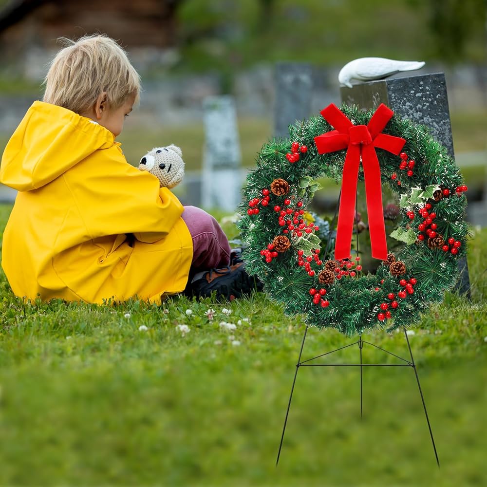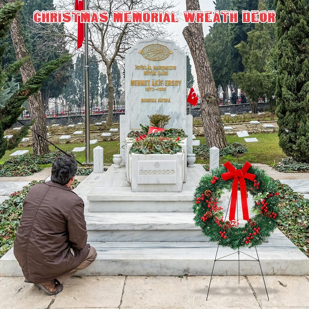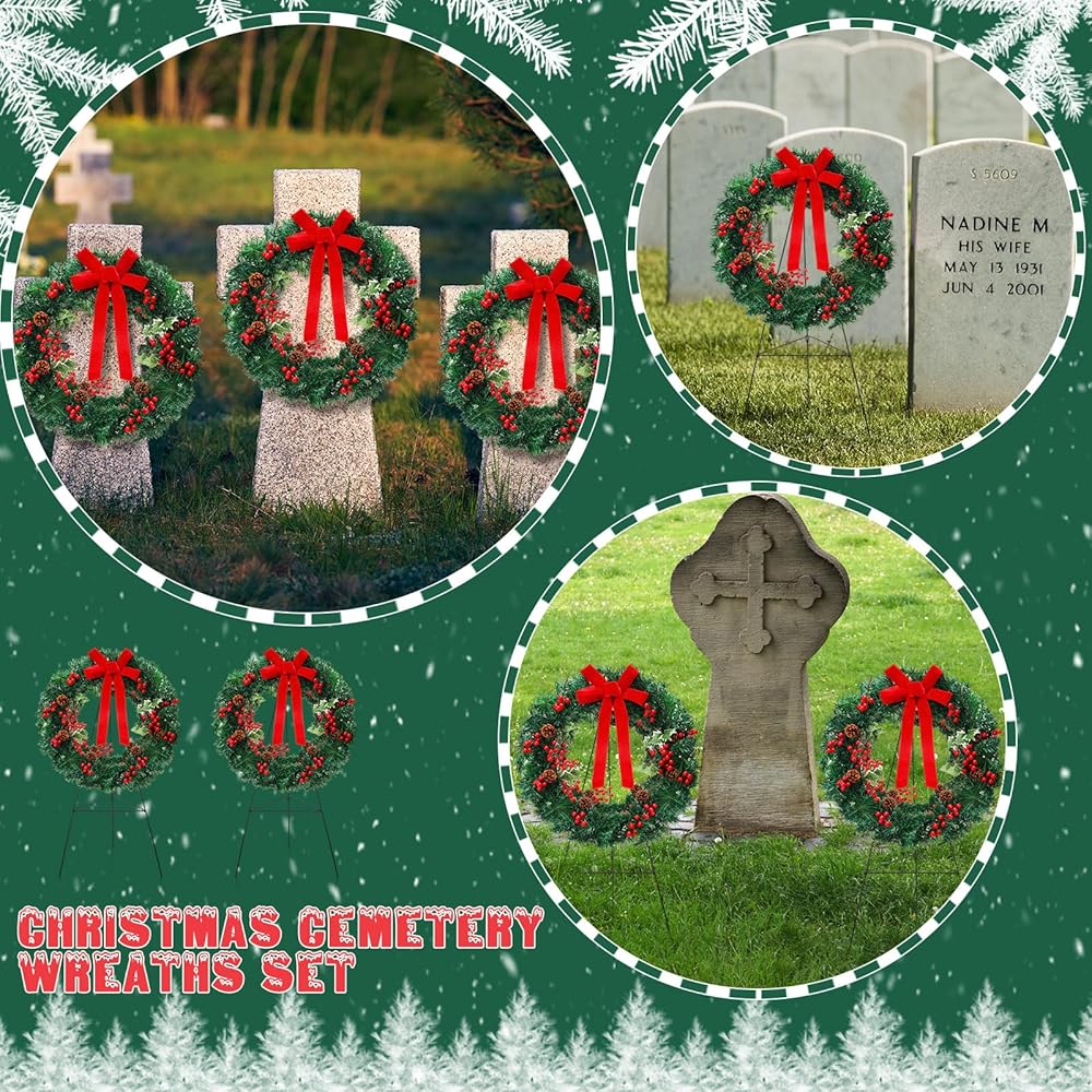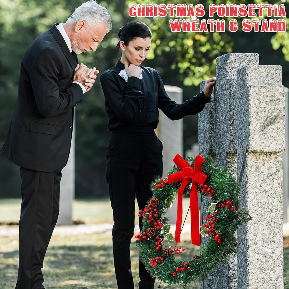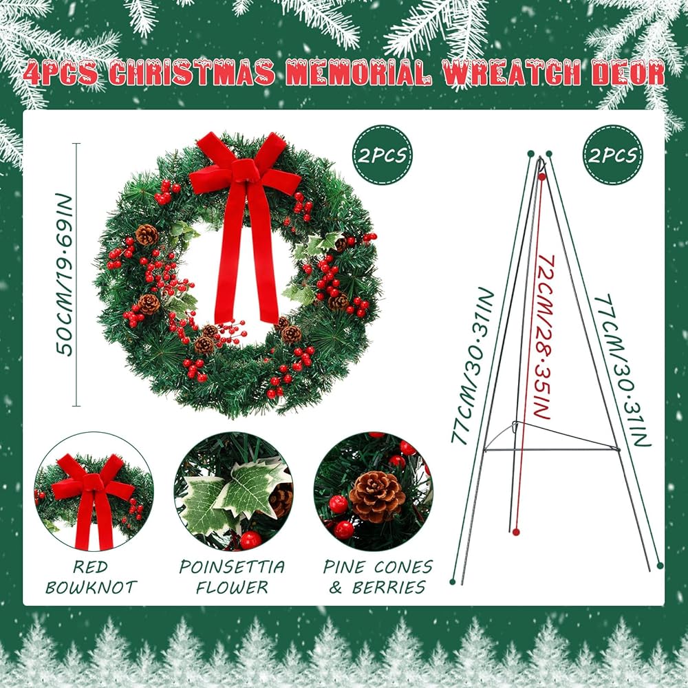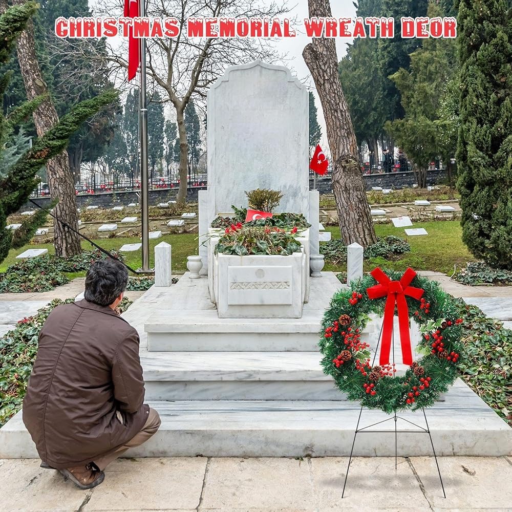 Realistic Appearance: these funeral wreaths are mainly crafted from PET material, decorated with red bows, pine cones, and red berry branches for a truly festive and lively vibe; Whether placed next to a gravestone, hung on your front door, or set up in your yard, this Christmas wreath shows your remembrance or warmly welcomes guests into your home as they celebrate the arrival of the Christmas season