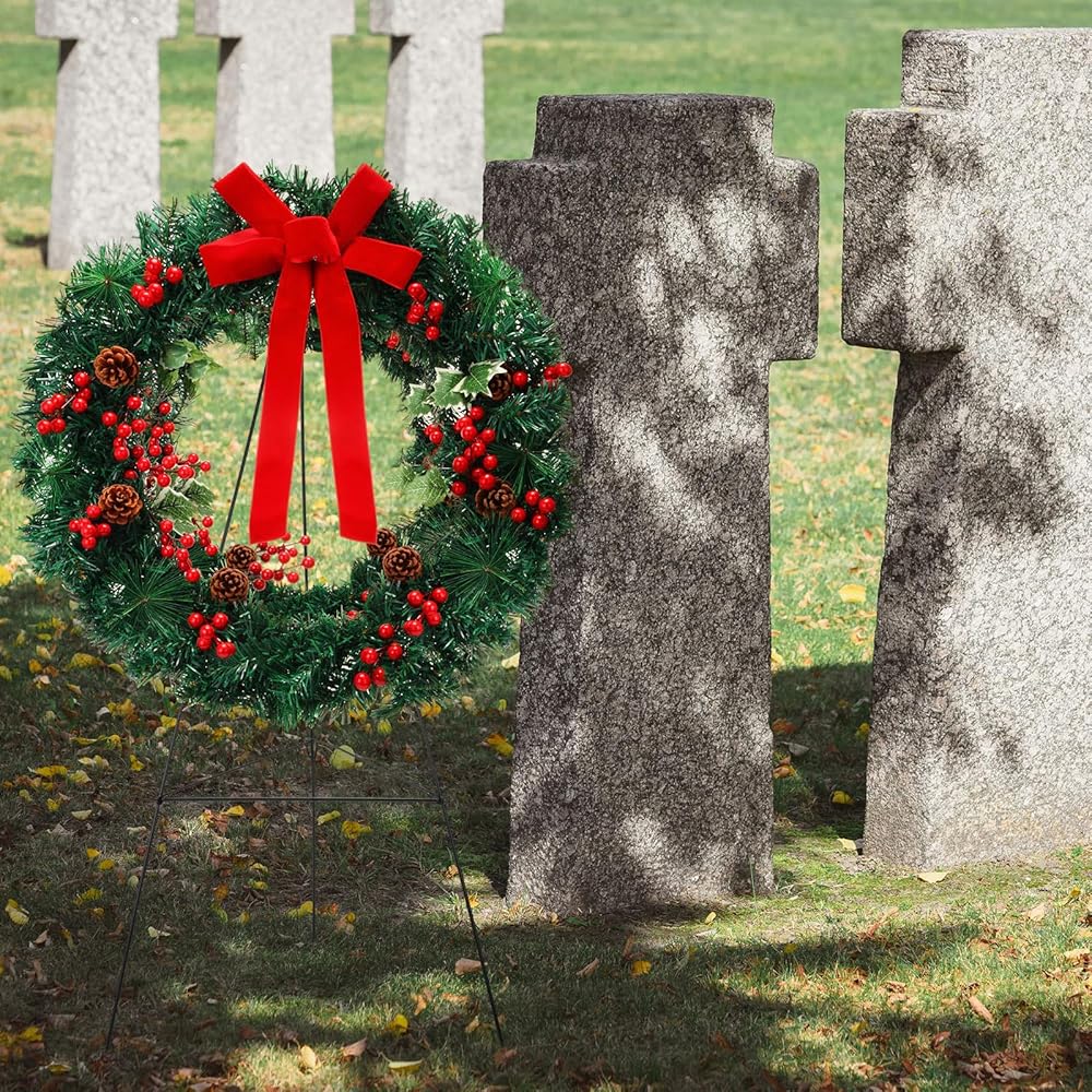 Package Content: package includes 2 pieces of Christmas wreaths and 2 pieces of cemetery wreath stands, the proper package content effectively addresses your decorative needs for memorial theme cemetery decorations and Christmas home decor needs, saving you time, effort, and additional transporting inconvenience; It also provides the possibility of interchanging or sharing, you can share them with family for a more connected Christmas celebration