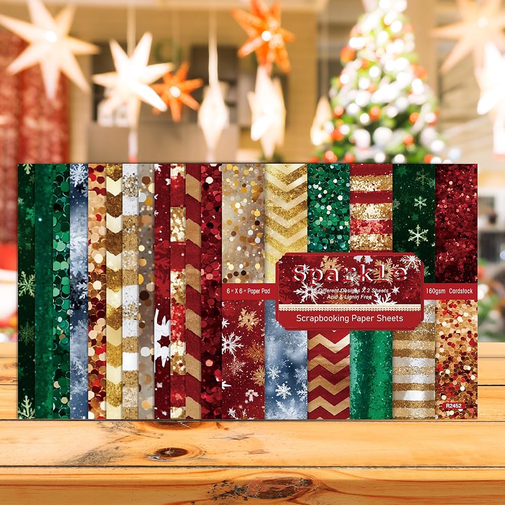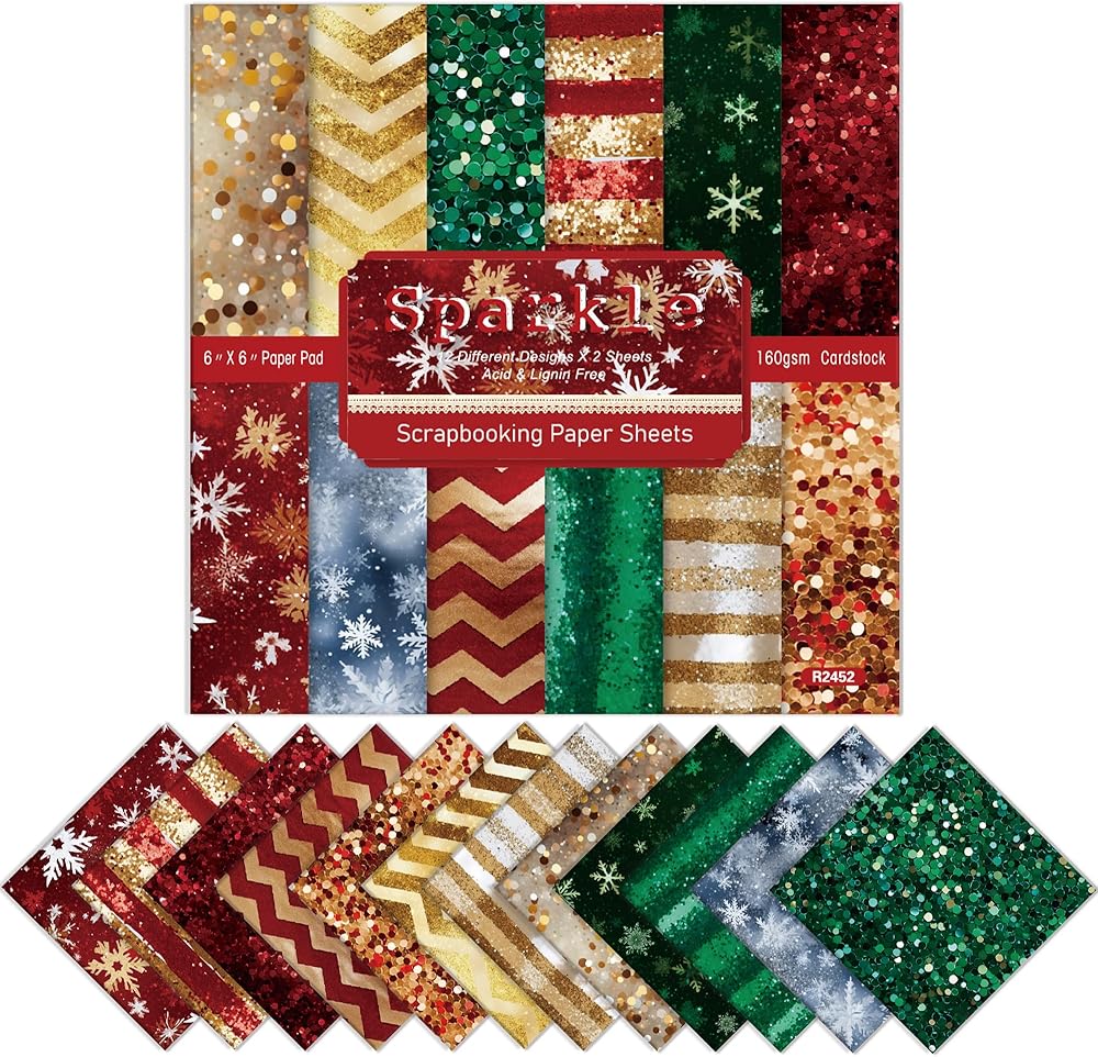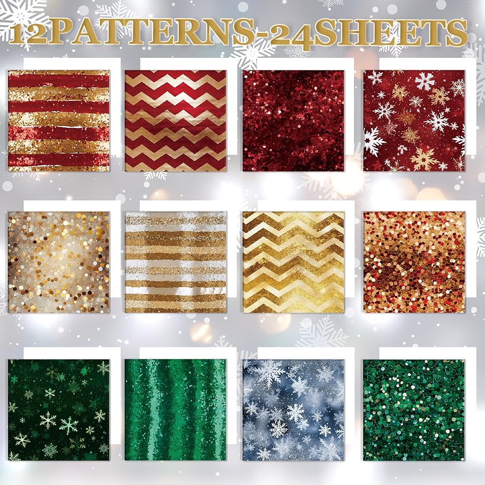 1.Christmas sparkle scrapbook paper features 12 designs with 2 sheets of each, allowing you to create unique craft projects.