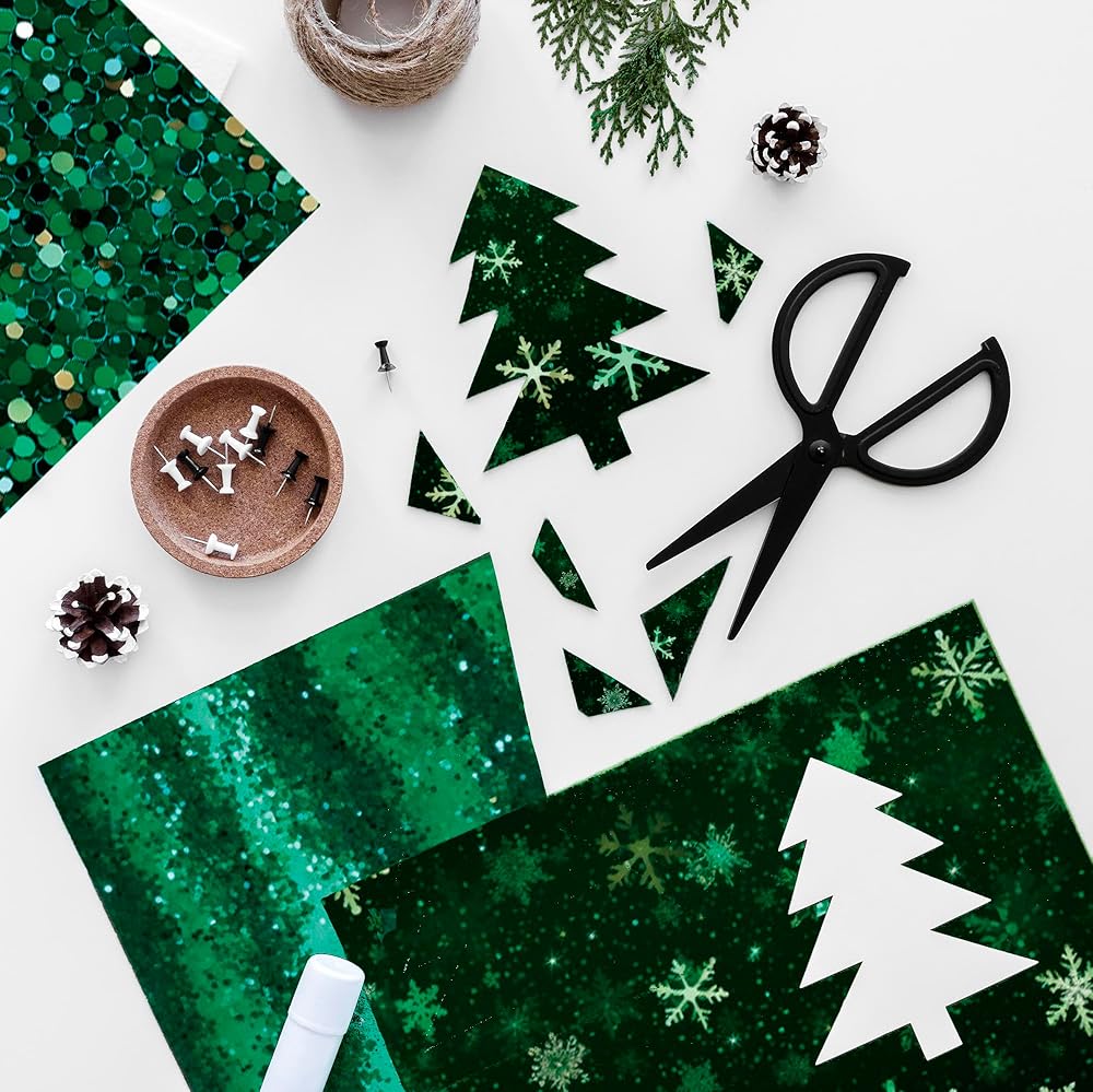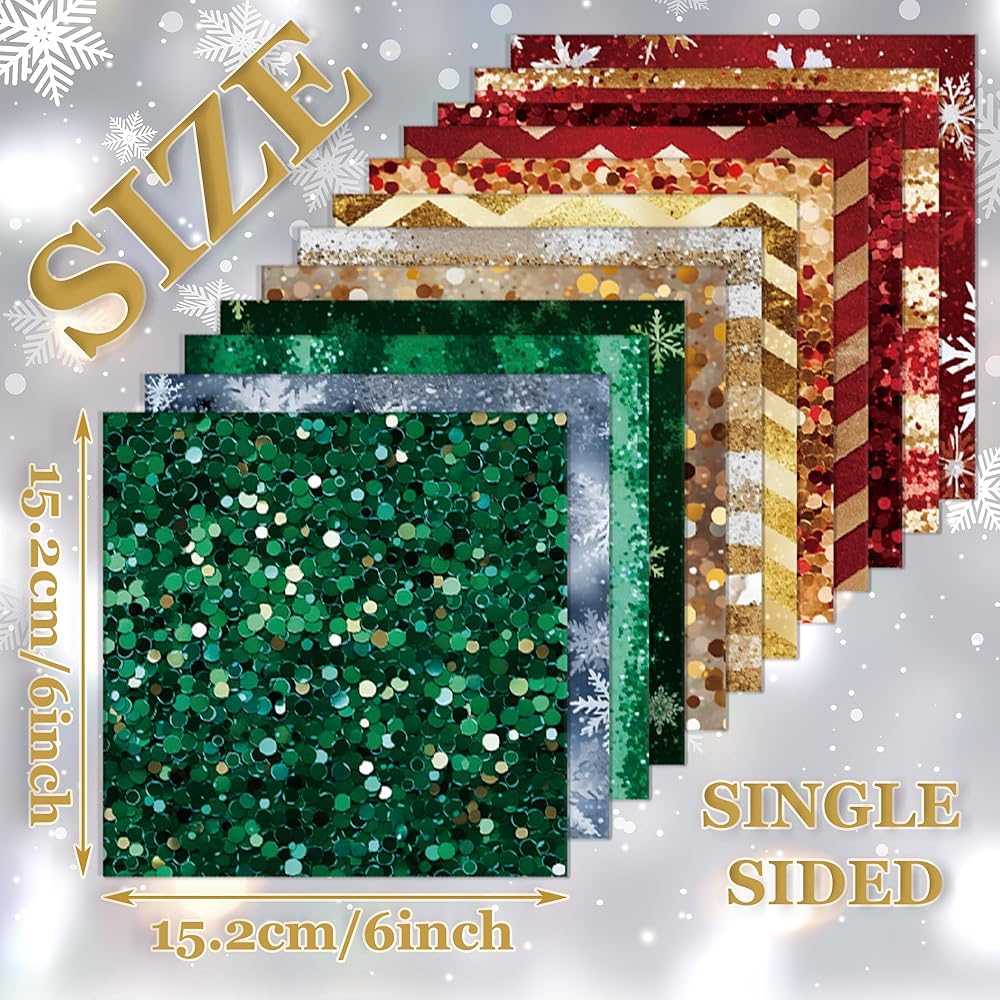 • - 🎄Christmas Sparkle: The Xmas sparkle pattern paper adds a touch of holiday magic to your creations, it adopts red and green themes, glittering, lines, dots and other designs to create a festive atmosphere. making them stand out with shimmering details.