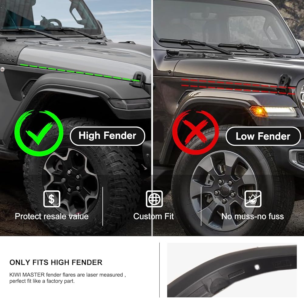 Fit for 2018-2025 Wrangler JL Rubicon (ONLY FITS High Fender)