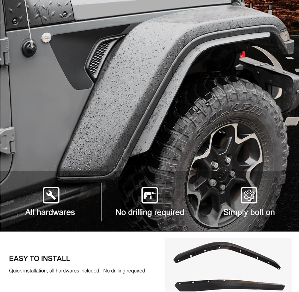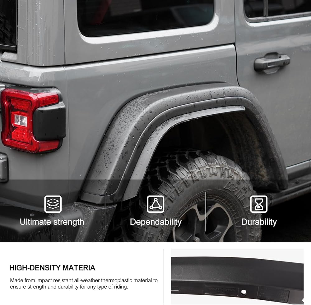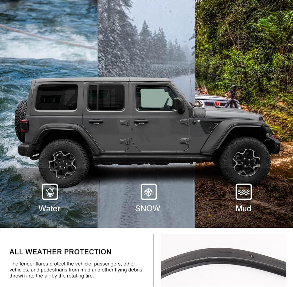 ▶ DURABLE FENDER FLARES FOR WRANGLER JL - Made from impact resistant all-weather thermoplastic material to ensure strength and durability for any type of riding.