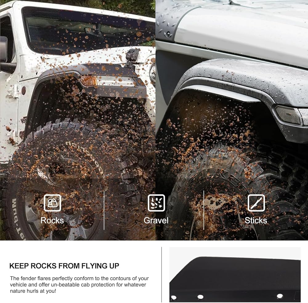 ▶ KEEPING MUD OFF YOUR WRANGLER JL - The Fender Flares Extensions protect the vehicle, passengers, other vehicles, and pedestrians from mud and other flying debris thrown into the air by the rotating tire.