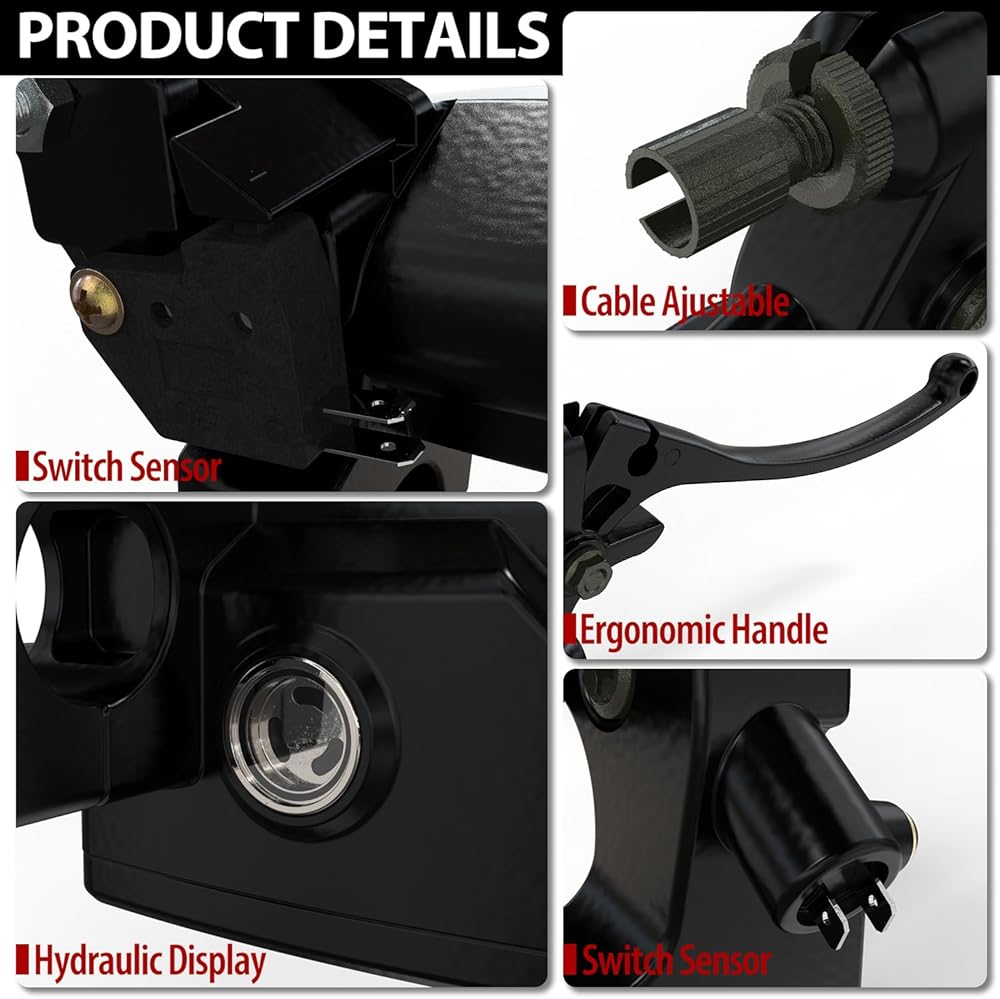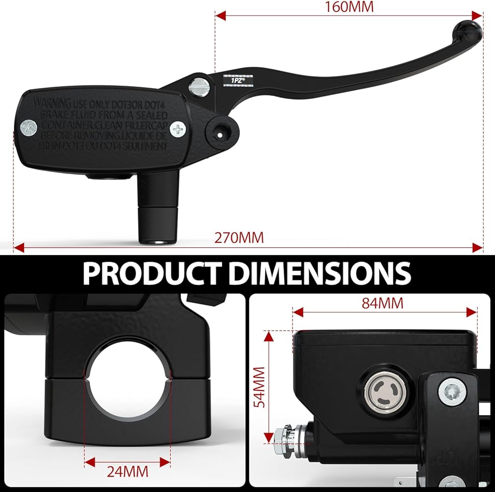 Package Includes 1x left brake master cylinder lever, 1x right brake master cylinder lever and 1x right disc brake switch in a 1PZ Brand Box.