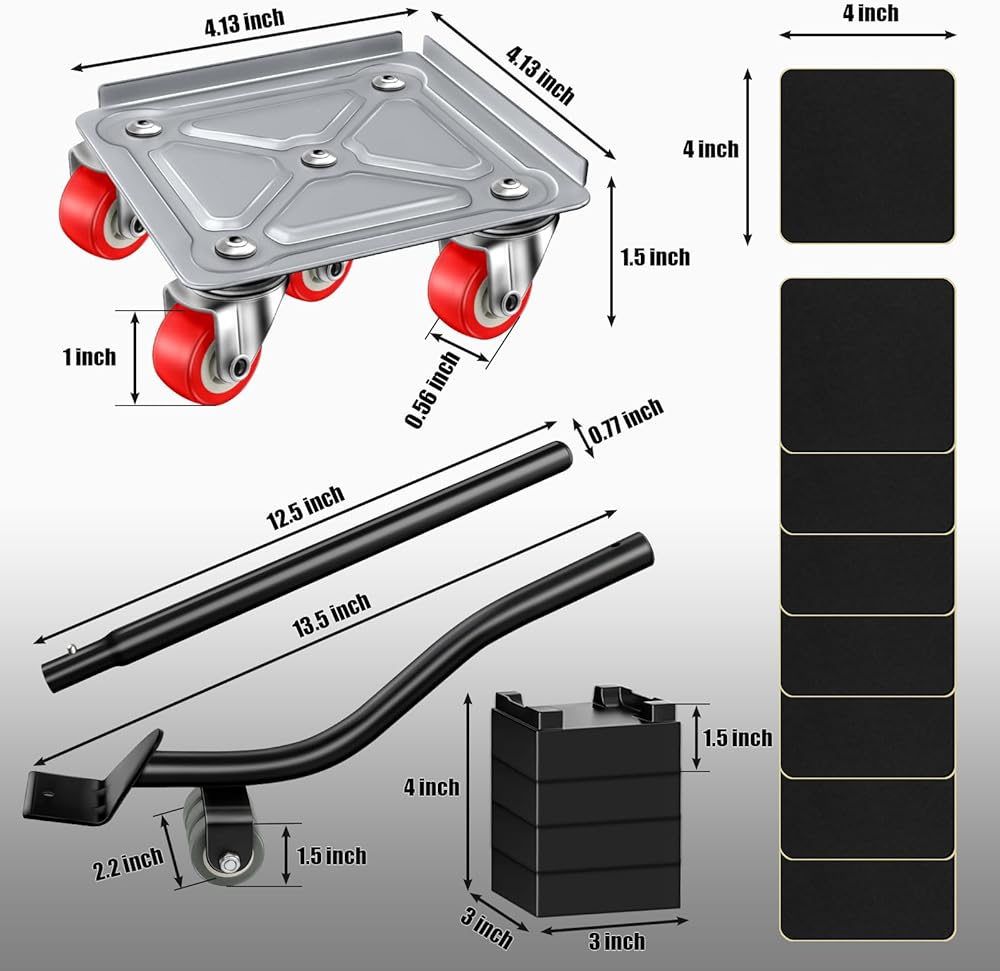 【مواد متينة】: أداة دوللي للأجهزة مع عجلات دوارة مصنوعة من الفولاذ الكربوني السميك، يمكنها تحمل ما يصل إلى 3475 رطلاً. مجموعة رافع الأثاث للأرضيات الصلبة التي تتحرك بمرونة لحماية أرضيتك من الخدوش.
