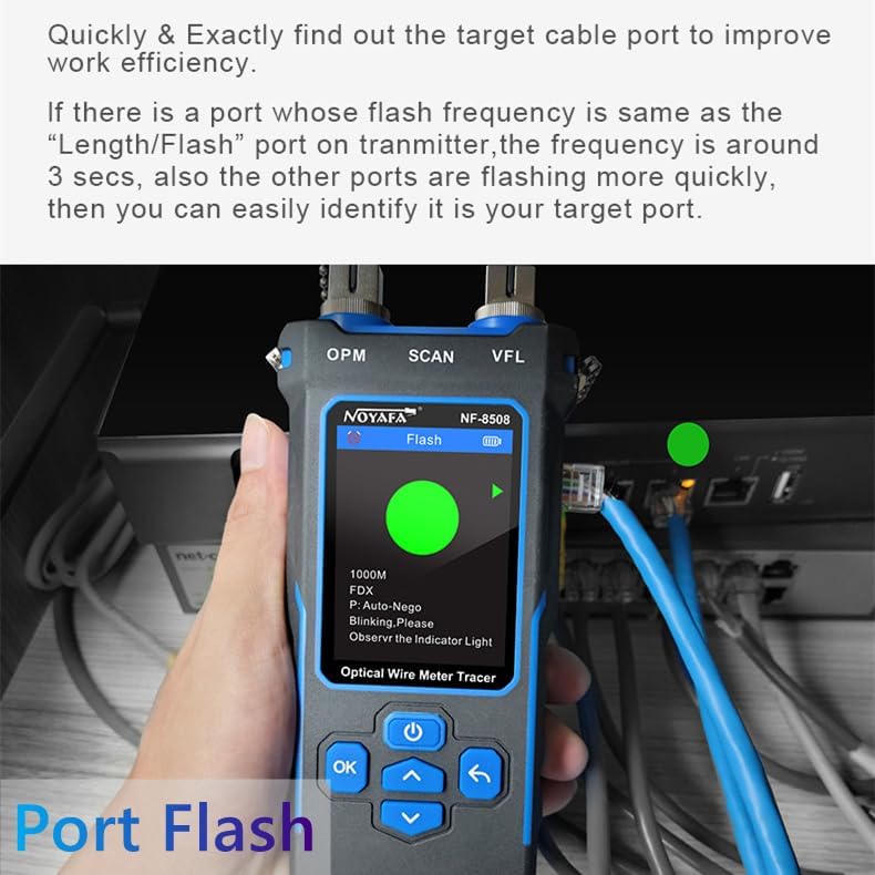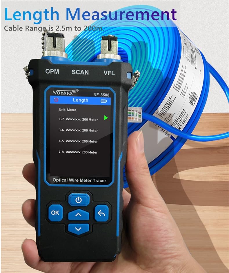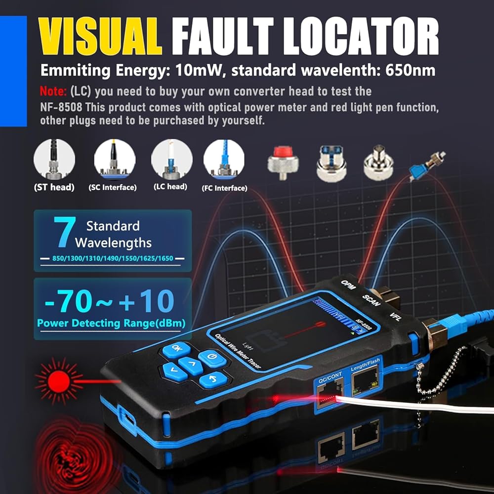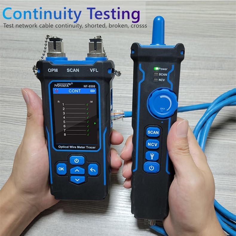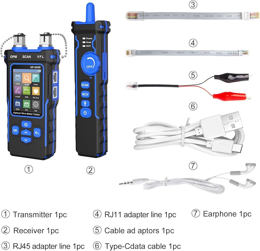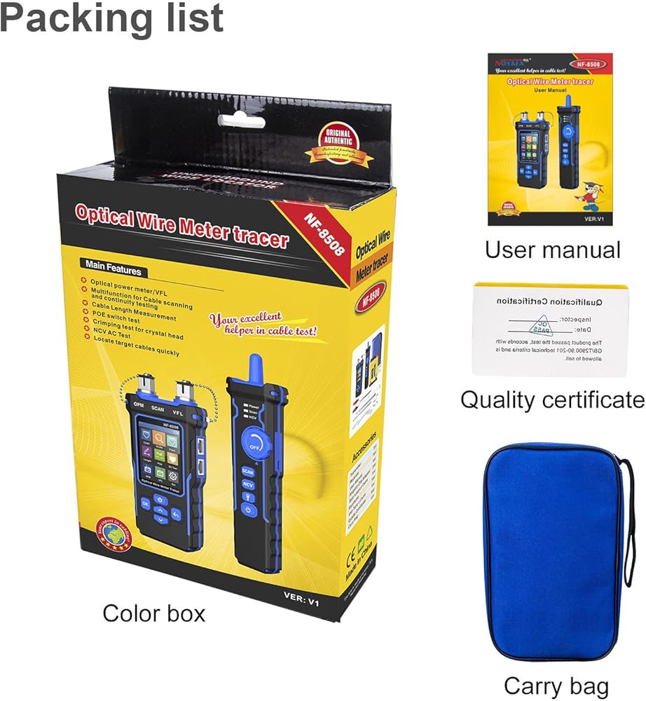 جهاز اختبار كابل الشبكة NF-8508 مع عداد الطاقة الضوئية VFL وPoE وقياس الطول - حبر كابل إيثرنت RJ11/RJ45/CAT5/CAT6 وتتبع خط الهاتف واختبار الألياف وأدوات الشبكة (NF-8508)