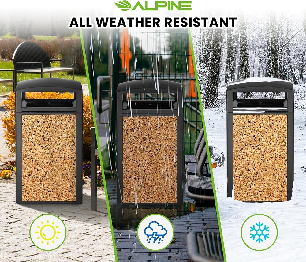 سعة كبيرة: بسعة 40 جالونًا، يمكن لهذه القمامة الصناعية إطالة الوقت بين المجموعات، مما يجعلها مثالية للمناطق ذات حركة المرور العالية مثل المتنزهات ومراكز التسوق وصالات الطعام والأماكن الخارجية.