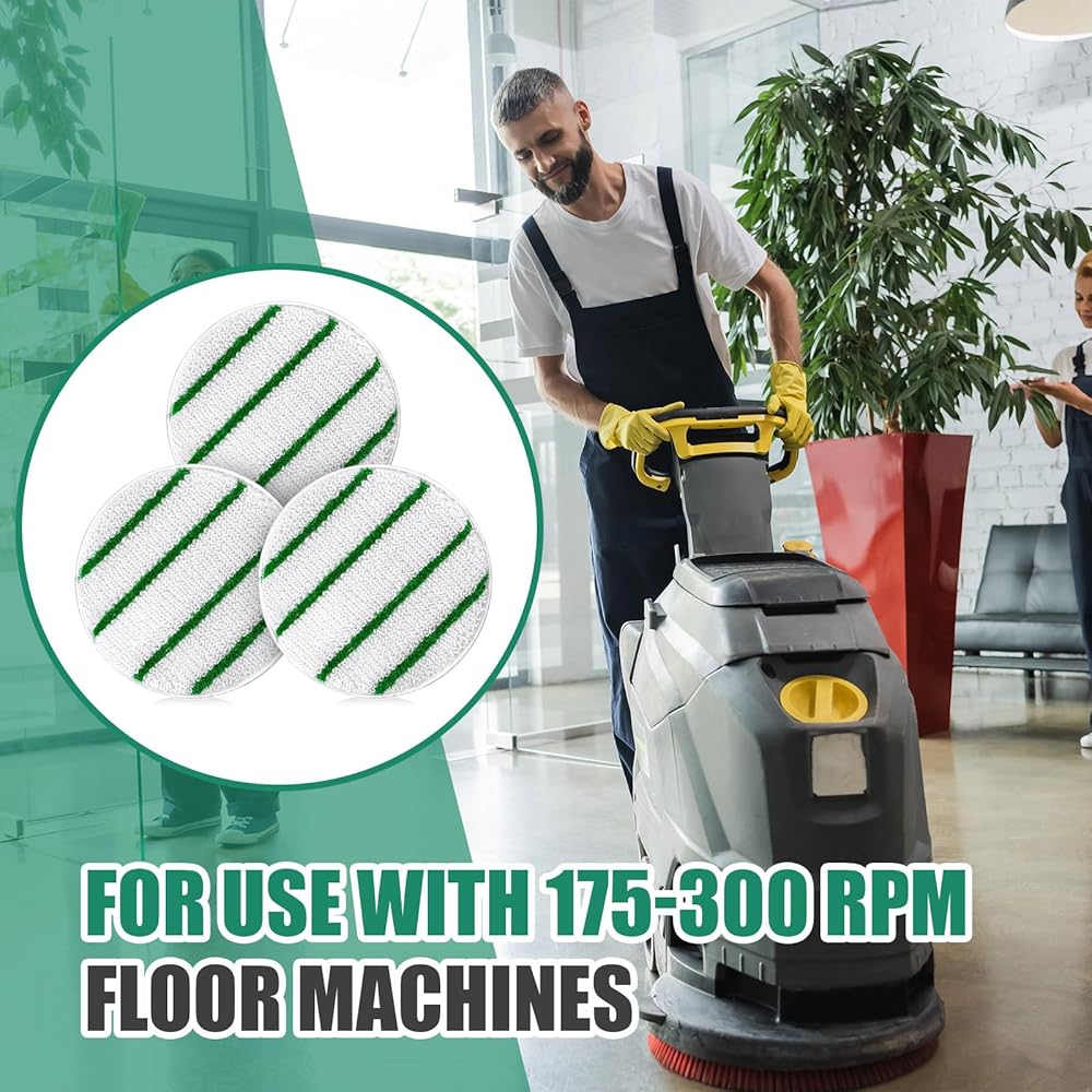Excellent Balance of Abrasion and Absorbency with Fine Count Synthetic Yarn: constructed from a blend of fine count synthetic yarn, this carpet bonnet pad promises a balance of abrasion and absorbency; The inclusion of green polypropylene scrubber strips adds an extra edge to its cleaning power; Such a blend makes it an ideal choice for both aggressive and mild loosening and lifting of soil from carpet surfaces