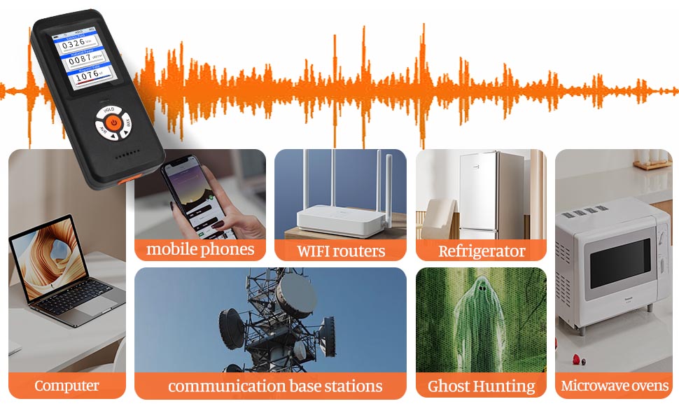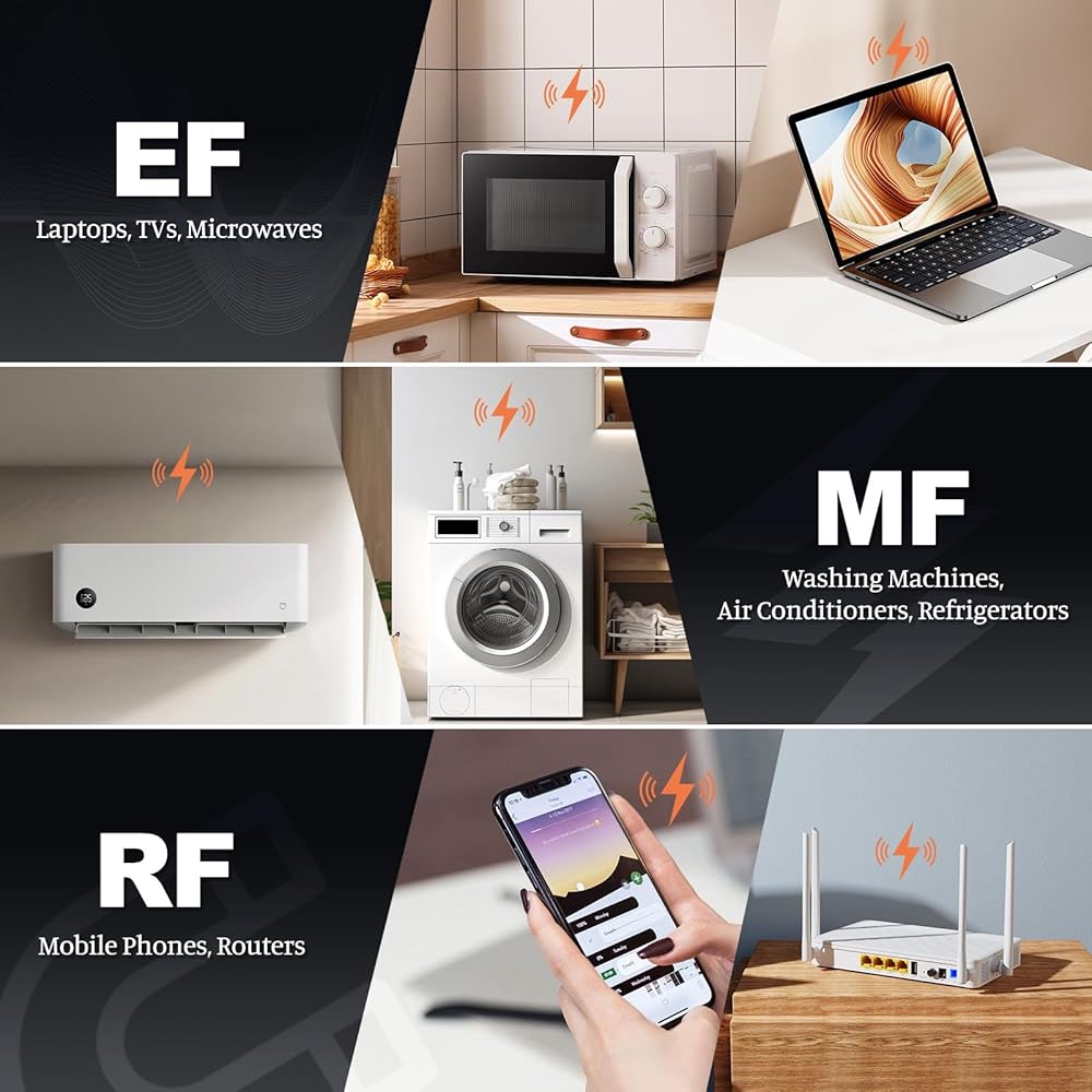 • تطبيقات متعددة الاستخدامات: يمكن لمقياس EMF اكتشاف إشعاع الميكروويف المنبعث من إشارات WiFi وإشارات 5G وأفران الميكروويف والأجهزة الأخرى، بالإضافة إلى قياس الإشعاع الكهرومغناطيسي المنبعث من الأجهزة المنزلية مثل أجهزة التلفاز، وأجهزة الطبخ الحثية، وأجهزة طبخ الأرز، والثلاجات، وأجهزة الكمبيوتر، وشرائط الطاقة . يمكن أن يساعدك في تخطيط غرفتك لتجنب وضعك في بيئة عالية الإشعاع