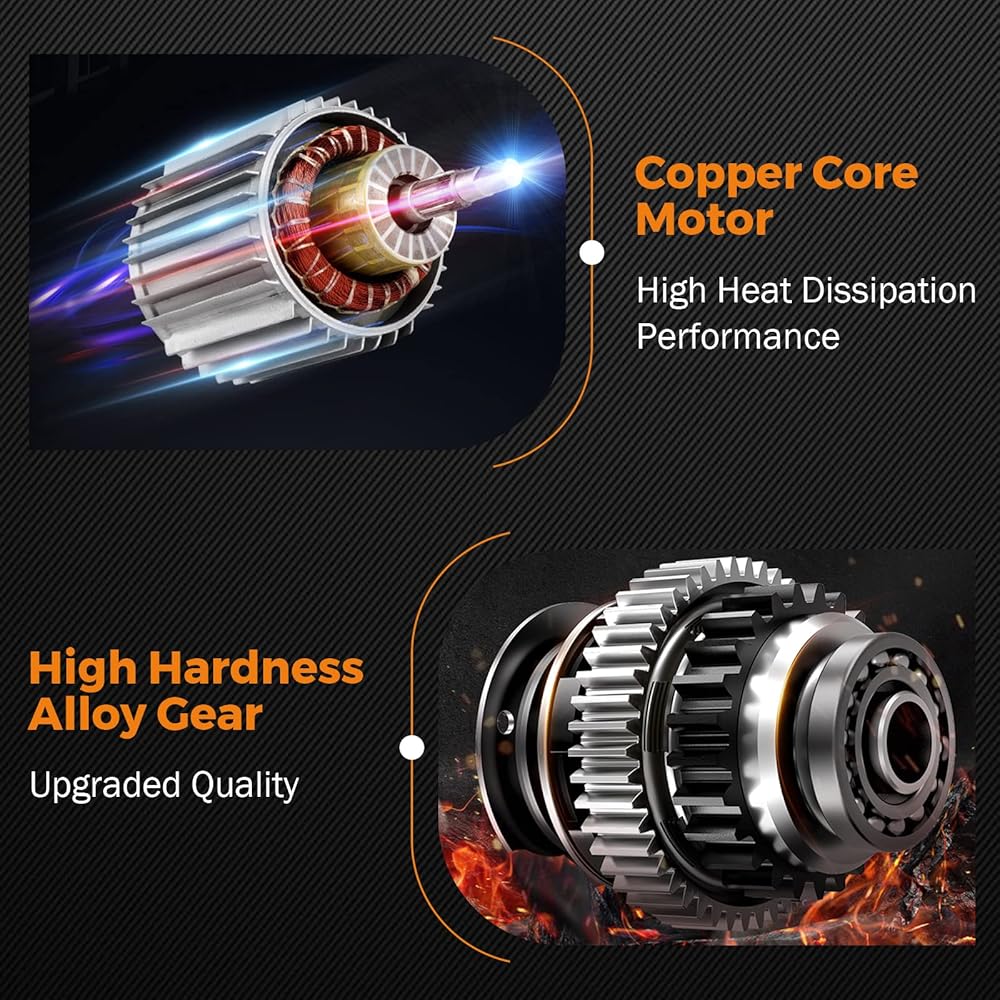 أداء عالي لتبديد الحرارة - يتمتع المحرك النحاسي الموجود داخل الرافعة بموصلية حرارية جيدة وموصلية كهربائية، وفقدان الجهد المنخفض، وقوة محرك عالية، وإنتاج حرارة منخفضة. تعمل مروحة التبريد المدمجة على تحسين تبديد الحرارة.