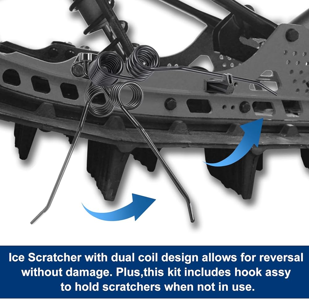 سهلة الاستخدام: ماكينة خدش الثلج بتصميم ملف مزدوج تسمح بالعكس دون تلف. بالإضافة إلى ذلك، تحتوي هذه المجموعة على خطافين لتثبيت الخدوش عند عدم الاستخدام.