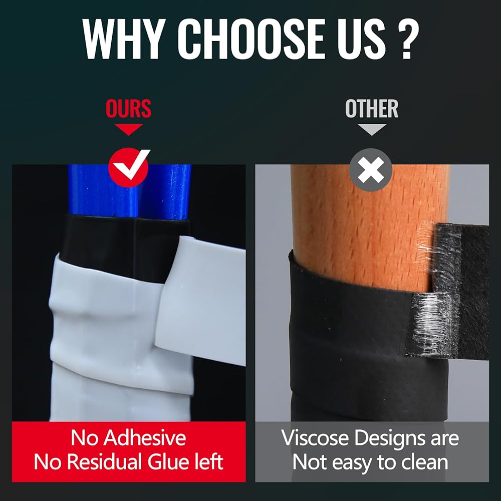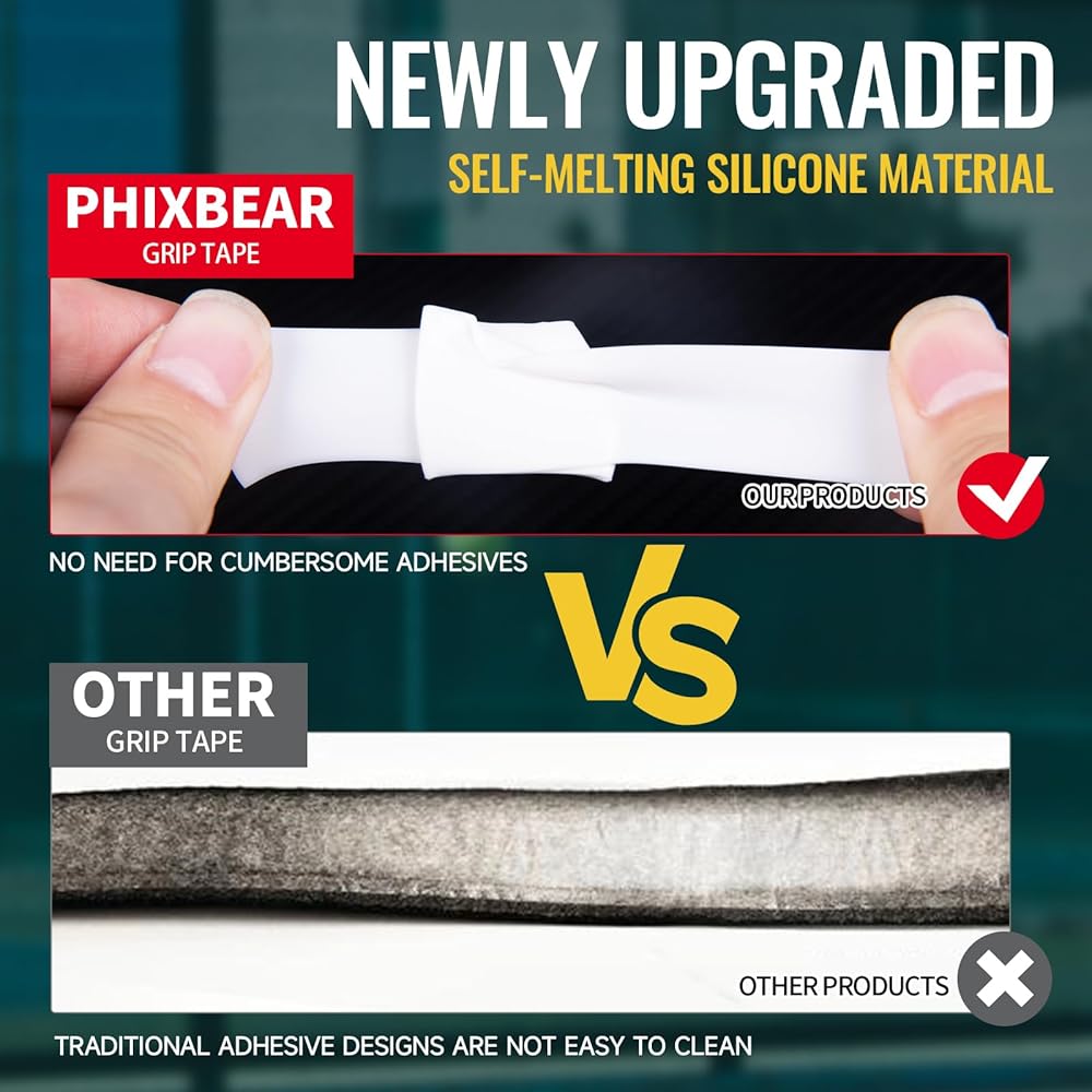 【مادة جديدة】قل وداعًا لتصميم المقبض اللاصق التقليدي. من السهل استبدال مادة السيليكون ذاتية الذوبان ولا تترك أي بقايا، مما يحافظ على الحالة الأصلية لمضرب التنس الخاص بك.