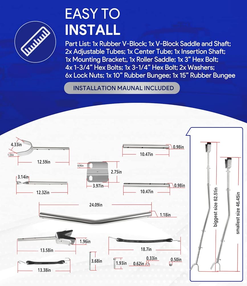 【Versatile Fit & Adjustable Design】 Our Transom Saver is meticulously designed to accommodate all types of outboard engines rated up to 150 HP. With its adjustable length ranging from 28" to 59", it offers a universal fit for nearly every outboard trailering application. This versatility ensures less stress and more enjoyment, making it an essential accessory for boat owners.