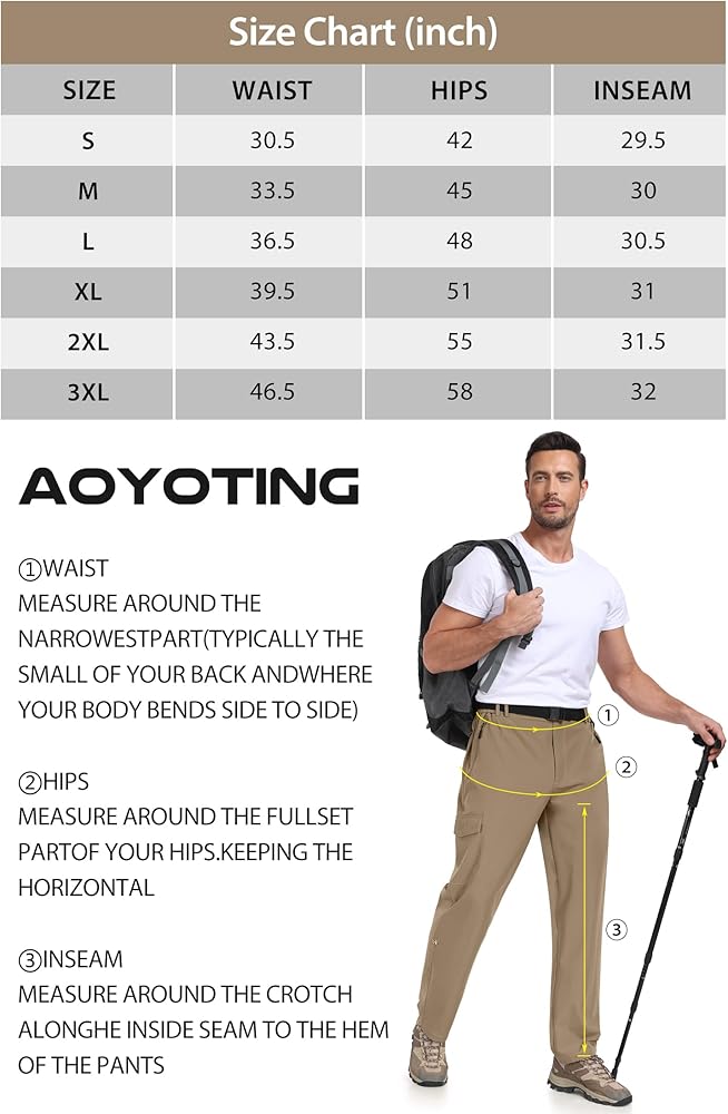 سراويل المشي لمسافات طويلة للرجال مصنوعة من نسيج متين: سراويل Aoyoting التكتيكية للرجال مصنوعة من 90% نايلون و10% ألياف لدنة. سراويل السفر سريعة الجفاف المقاومة للماء خفيفة الوزن وناعمة وقابلة للتنفس، مثالية للعمل اليومي وارتداء المشي لمسافات طويلة