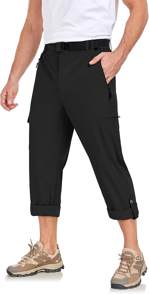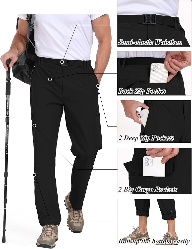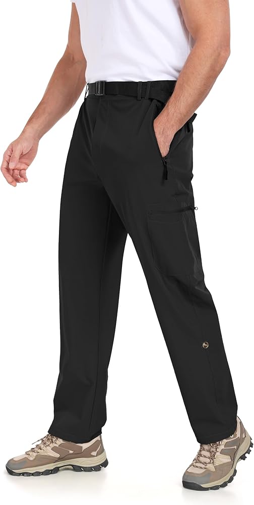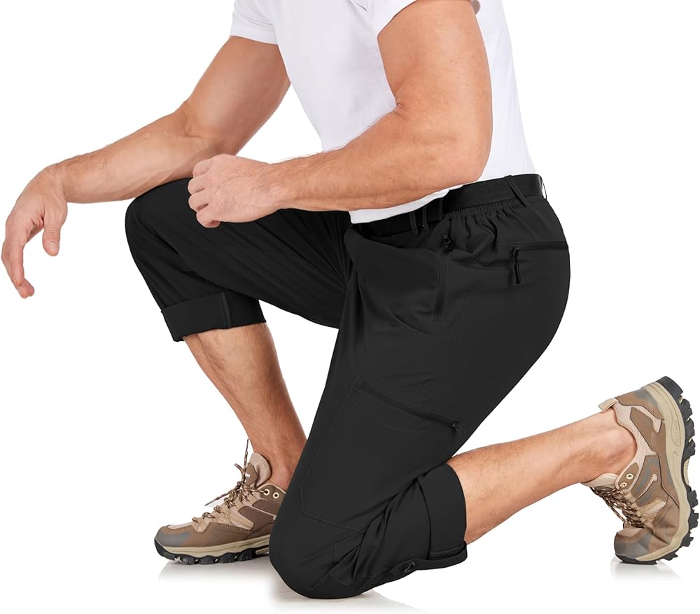 سراويل رجالية مع حزام ويمكن تحويلها بسهولة إلى سراويل كابريس: مع وضع راحتك ومرونتك في الاعتبار، تتميز السراويل التكتيكية للرجال بسراويل خصر مرنة على كلا الجانبين، وحزام خصر قابل للتعديل، وحلقات حزام، وزر وسحاب للإغلاق. مع الزر المبتكر تصميم على الحاشية، يمكن تحويله بسهولة إلى سراويل بطول 7/8، مما يسمح بمعالجة التغيرات الجوية غير المتوقعة أو المسارات الموحلة بسهولة