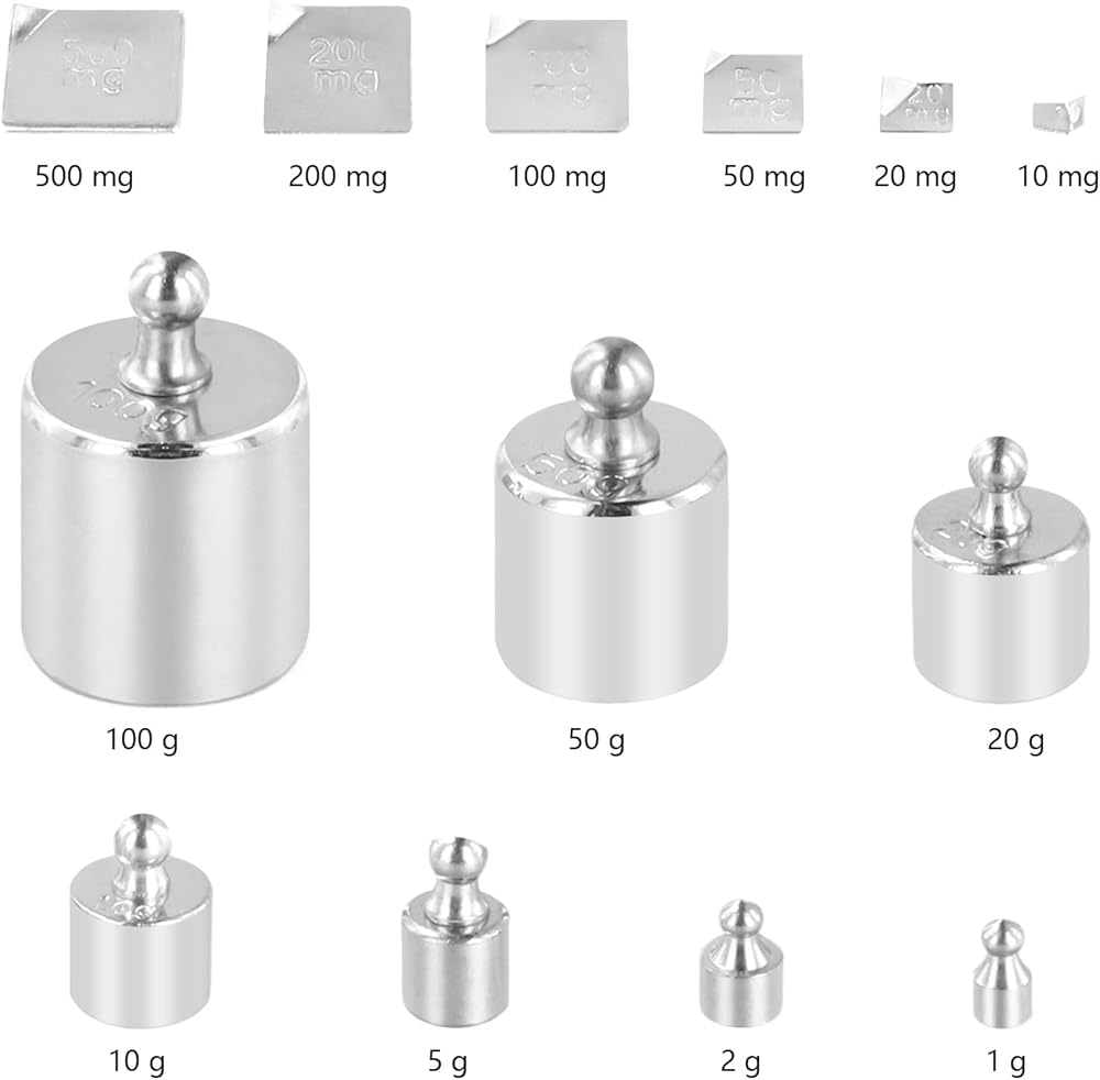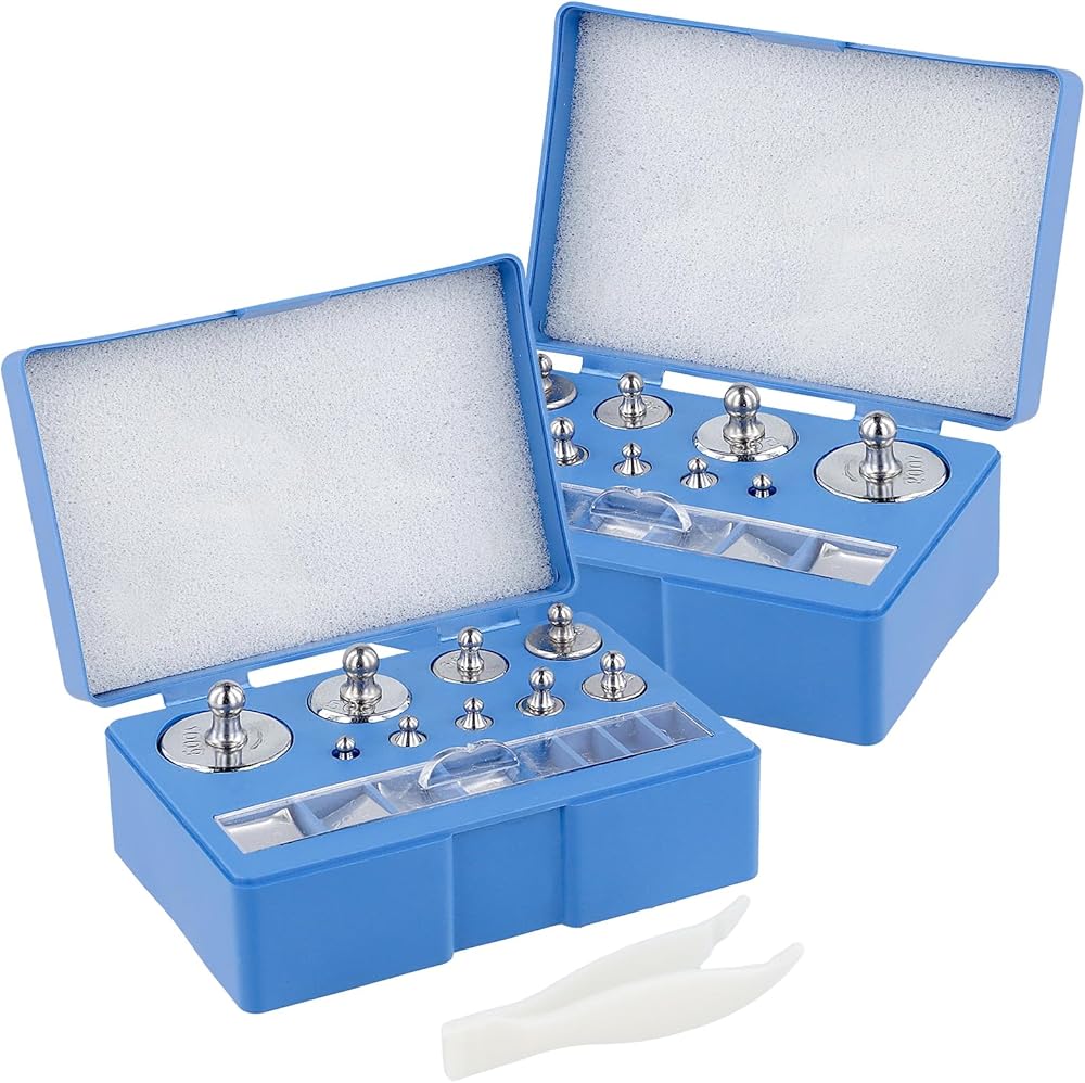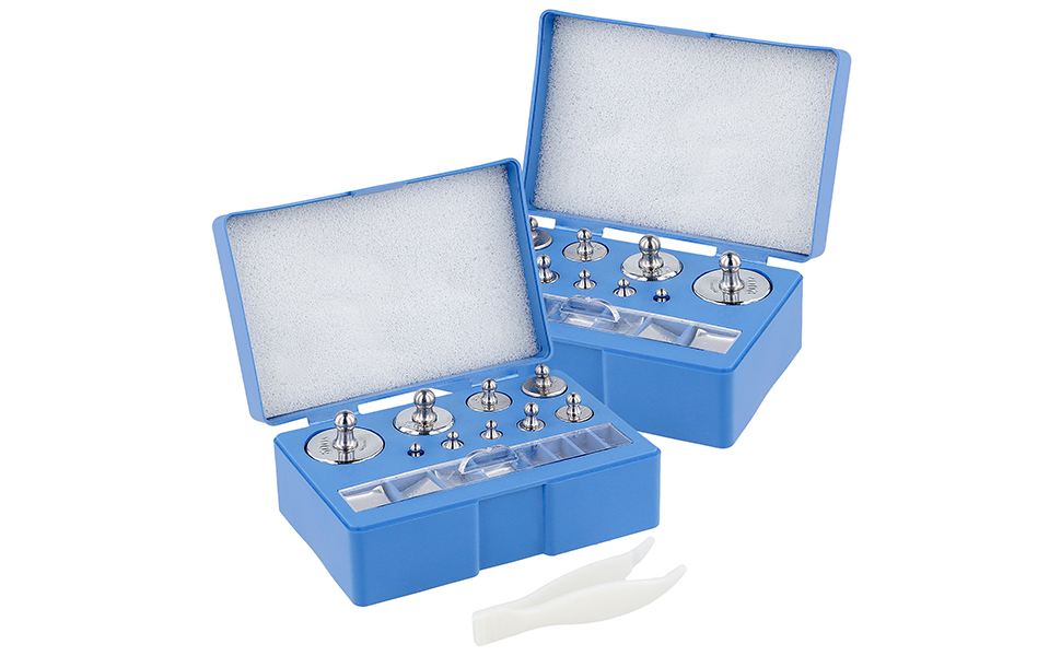 عبوة قيمة - تحتوي العبوة على صندوقين من مجموعة أوزان المعايرة، كل صندوق يتضمن 100 جرام × 1، 50 جرام × 1، 20 جرام × 2، 10 جرام × 1، 5 جرام × 1، 2 جرام × 2، 1 جرام × 1، 500 ملجم × 1، 200 ملجم × 2، 100 ملجم × 1 م 50 ملجم × 1، 20 ملجم × 2، 10 ملجم × 1. إجمالي 34 قطعة بأوزان جرام صغيرة.