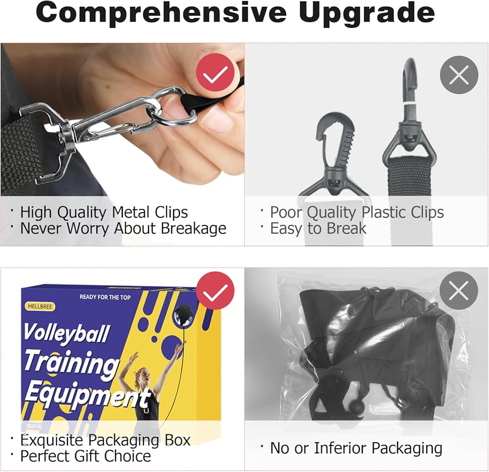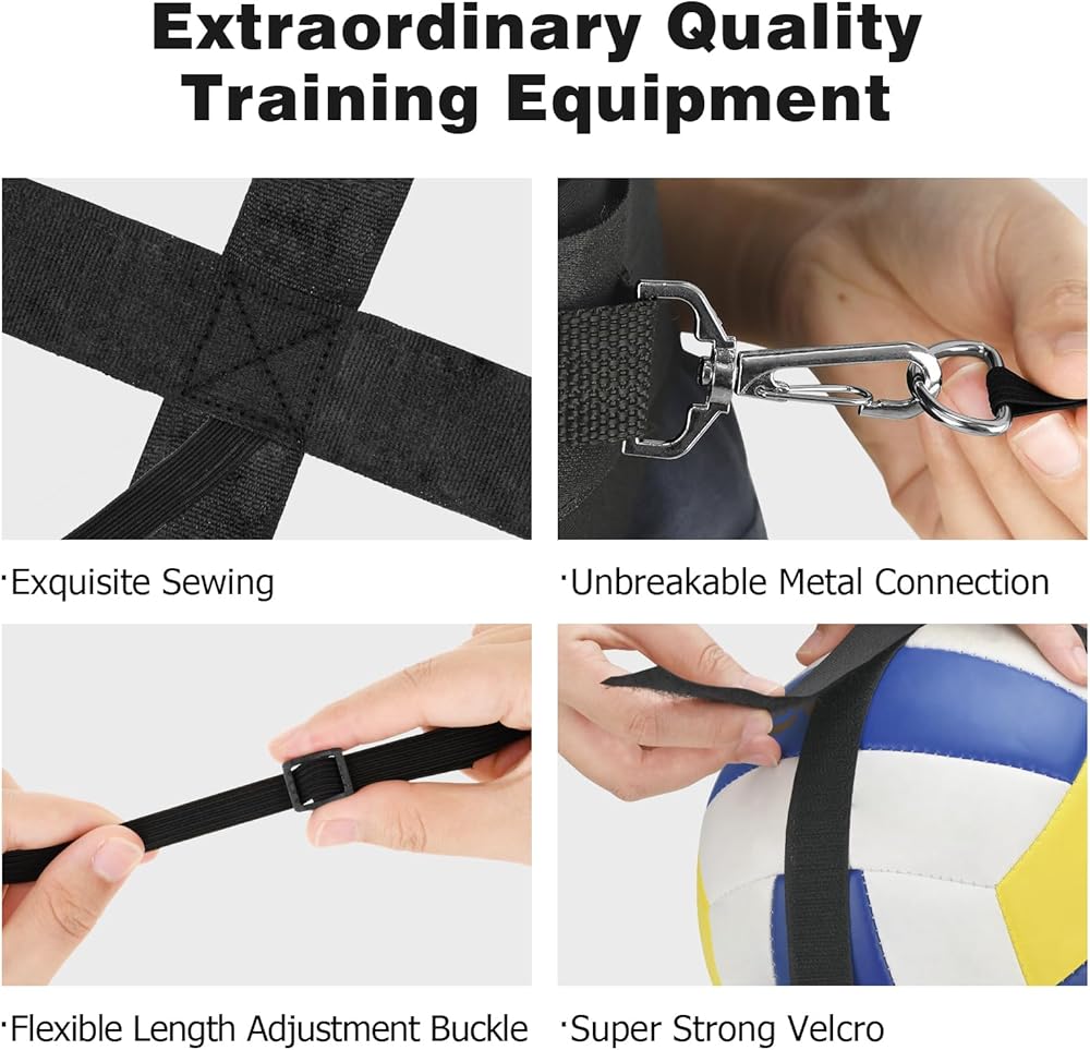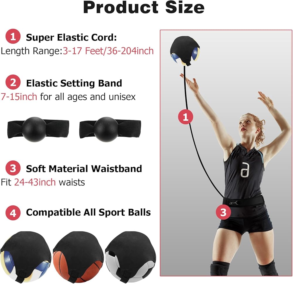 Adjustable Elastic Cord:The adjustable length elastic rope has a minimum length of 3 feet and can be stretched up to 17 feet, guarantees optimal training for every session. Whether serving, spiking, or setting, the elastic cord ensures smooth returns, catering to athletes of all heights.