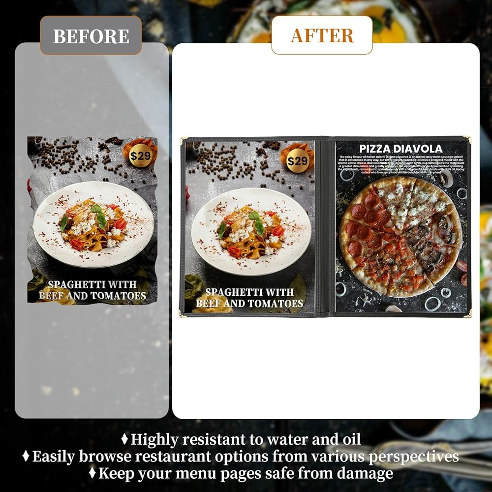أغطية القائمة الأنيقة: غطاء قائمة IVWNNN مصنوع من مادة PVC عالية الجودة، مما يضمن متانة طويلة الأمد ومقاومة للتآكل والتمزق اليومي في بيئات المطاعم المزدحمة.