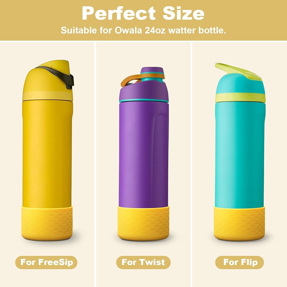 Fits Pefectly: Silicone water bottle boot sleeve for Owala 24 oz FreeSip, Twist, or Flip water bottles.