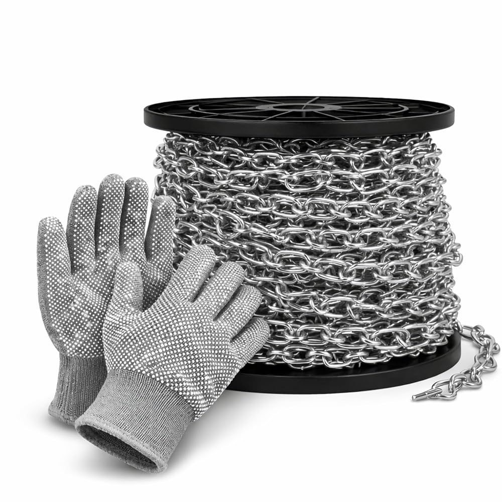 سلسلة جاك بطول 130 قدم - قابلة للقطع بسهولة لاستخدامات متعددة: يبلغ طول هذه السلسلة المعدنية 65 قدمًا، مما يوفر مادة وافرة لمجموعة متنوعة من التطبيقات. تم تصميم السلسلة المجلفنة ليس فقط من أجل القوة والمتانة ولكن أيضًا من أجل تعدد الاستخدامات. يمكنك قصه بسهولة إلى أطوال مخصصة باستخدام الأدوات الشائعة، مما يسمح باستخدامات متعددة مصممة خصيصًا لتلبية احتياجاتك الخاصة.