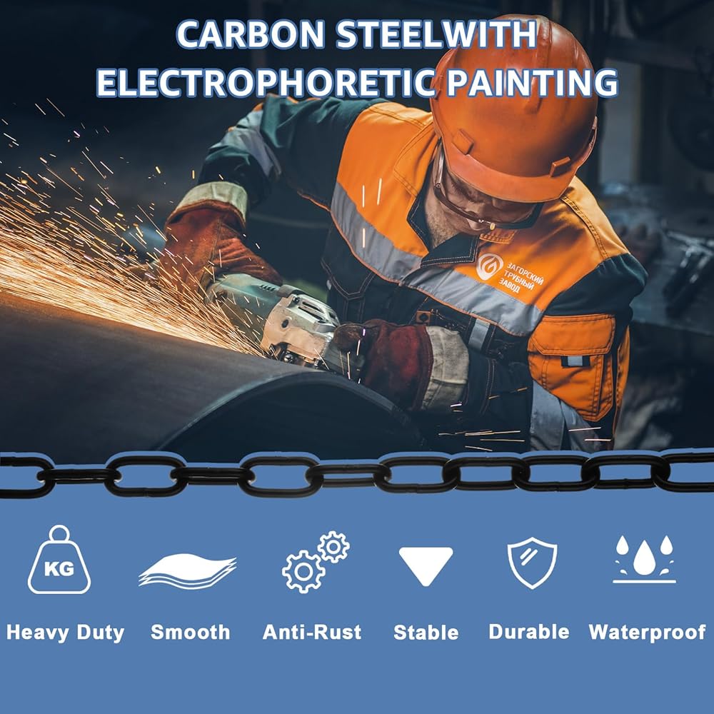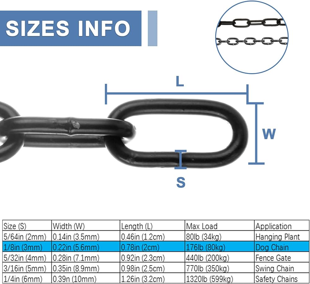 AKOLAFE 315 x 1/8 Inch Black Chain Link, 26.2 ft Long Metal Heavy Duty Chain Bulk, Decorative Chain for Hanging Plants, Basket & Picture, Carbon Steel Chain for Light Fixture, Chandelier, Lamp, Clothes & Dog Leash
