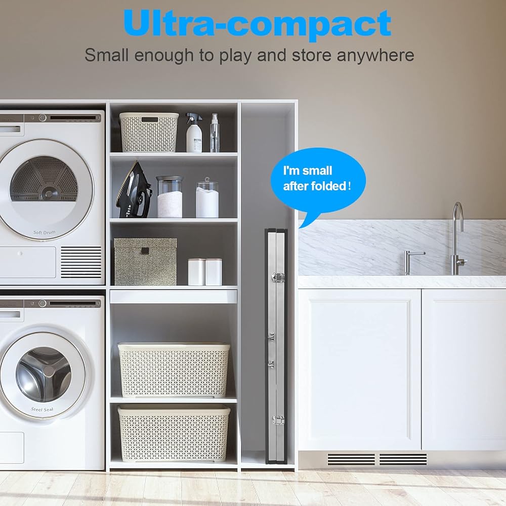 • 【COMPACT STORAGE】Our table tennis table features a foldable design on each half with a double locking mechanism for effortless storage. Equipped with wheels at the bottom (8ft/9ft), it can be easily moved and securely locked into the storage place or playing field.