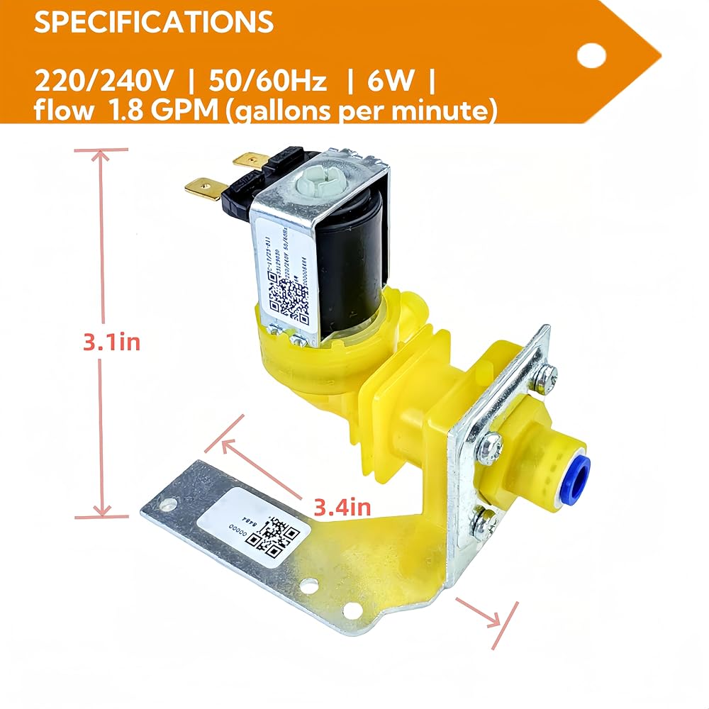 • Specification: 220/240V, 50/60Hz, consumes 6W of power, and has a flow rate of 1.8 gallons per minute (GPM).