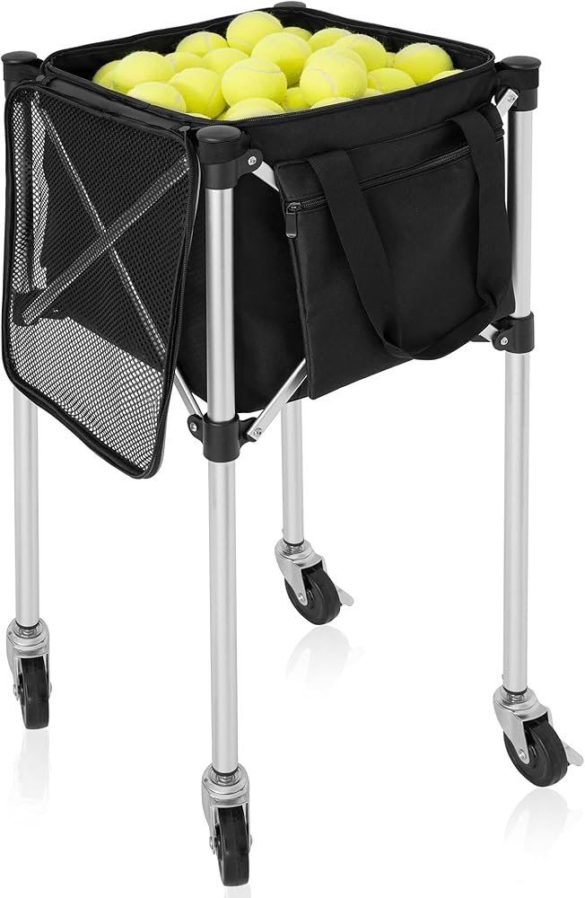 AKOZLIN كرة التنس النطاط مع عجلات تحمل ما يصل إلى 150 كرات عربة كرة التنس المحمولة سبائك الألومنيوم عربة التدريس الرياضية خفيفة الوزن